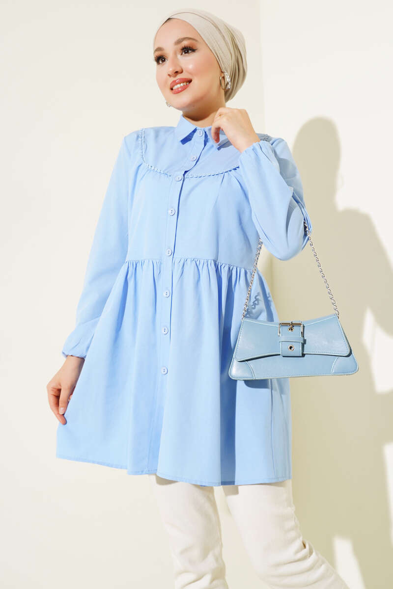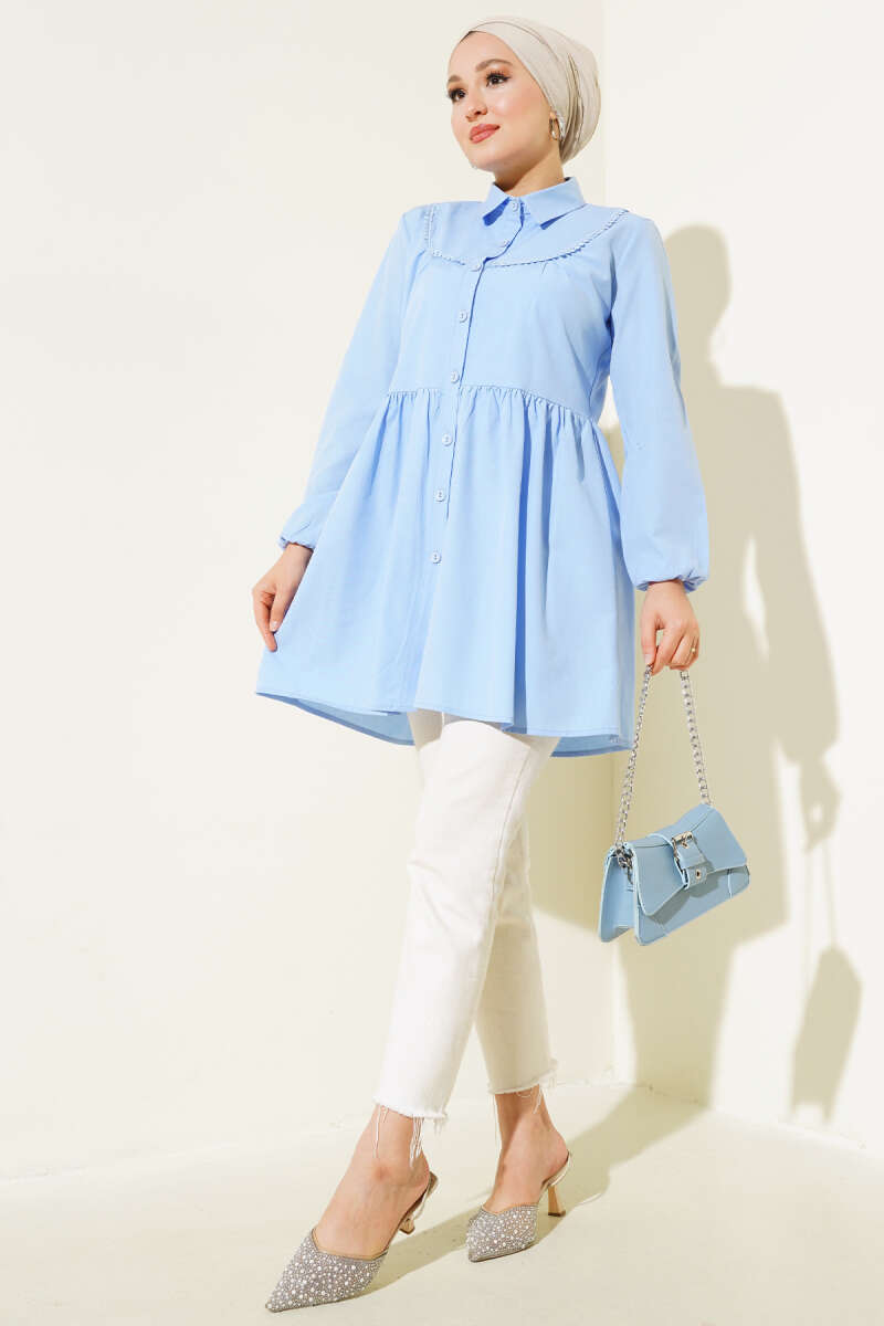 Önü Dantelli Gömlek Taş