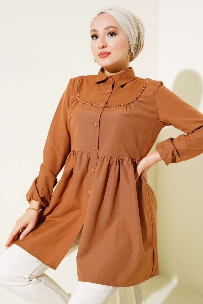 Boncuk İşlemeli Gömlek Fıstık Yeşili