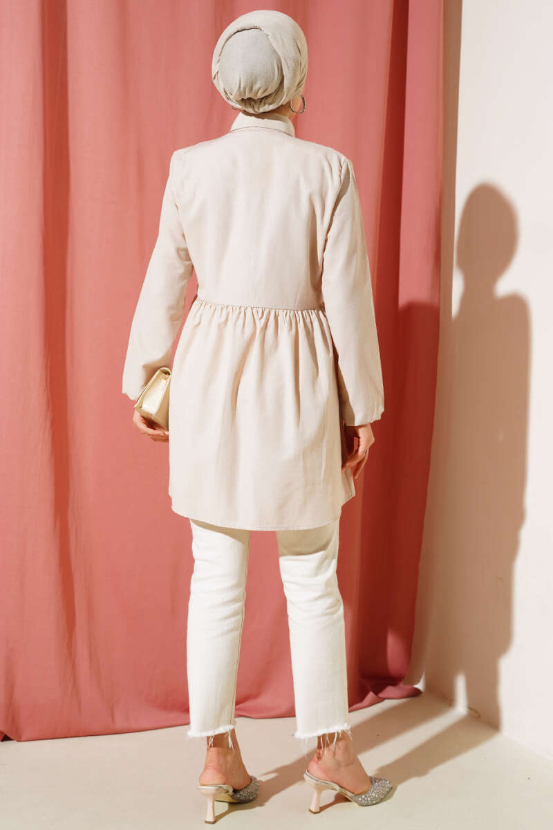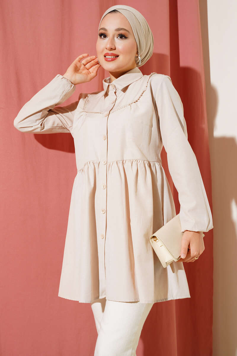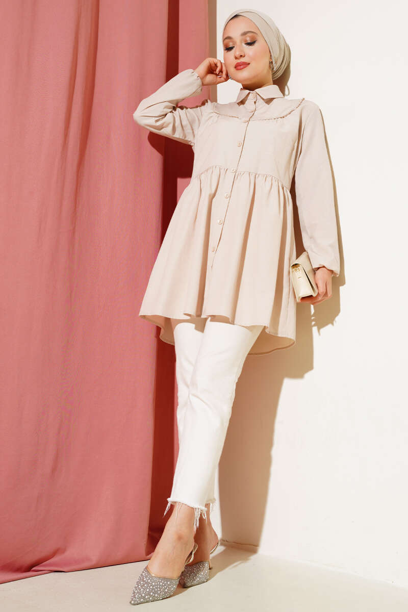 Boncuk İşlemeli Gömlek Bej