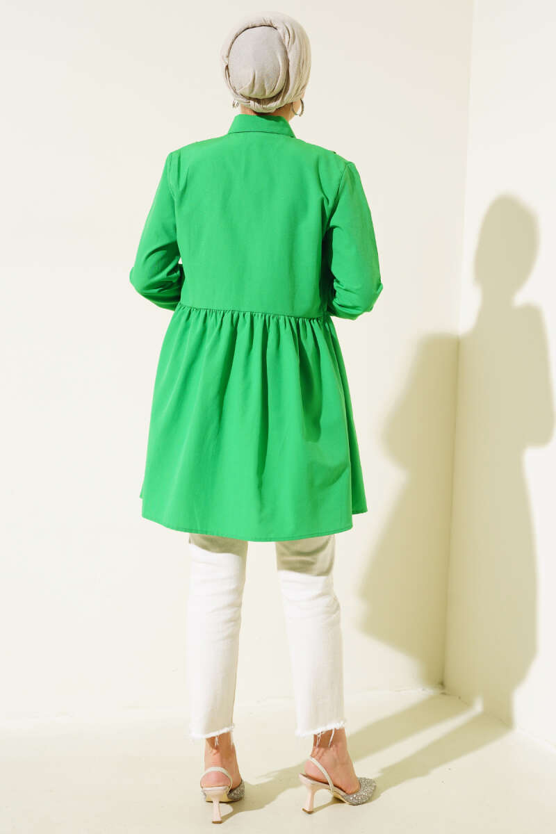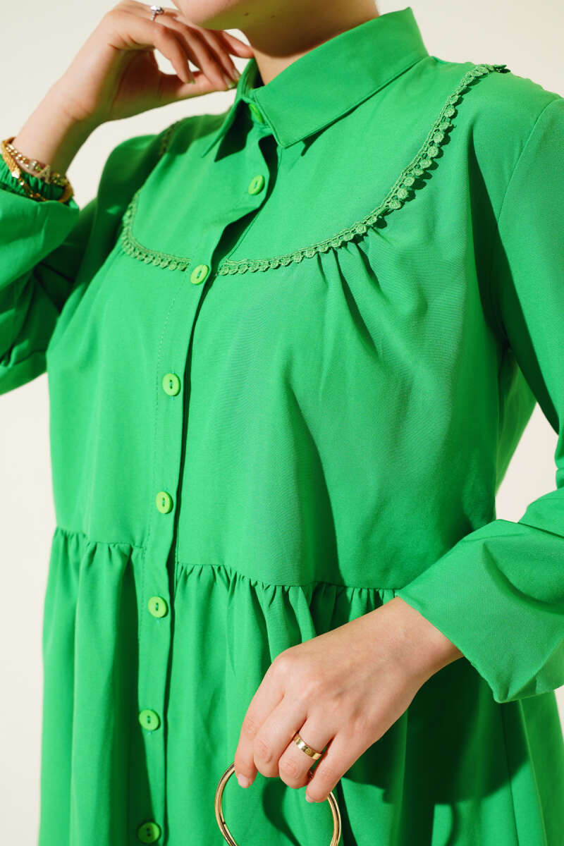 Önü Dantelli Gömlek Fıstık Yeşili