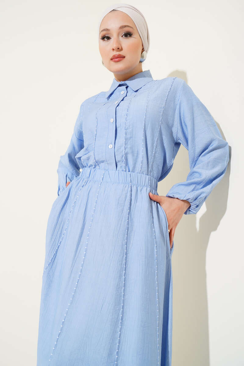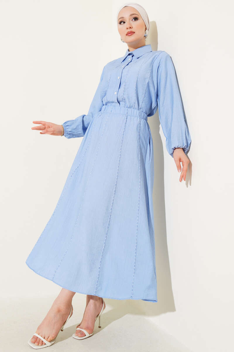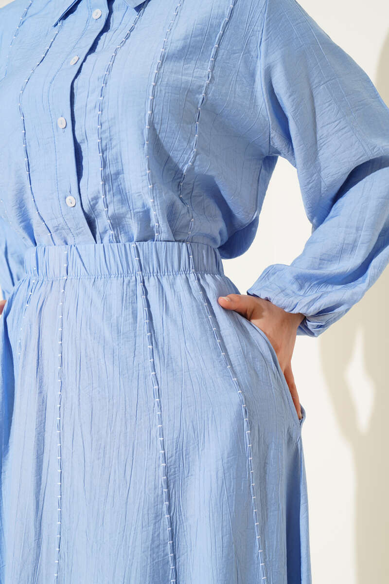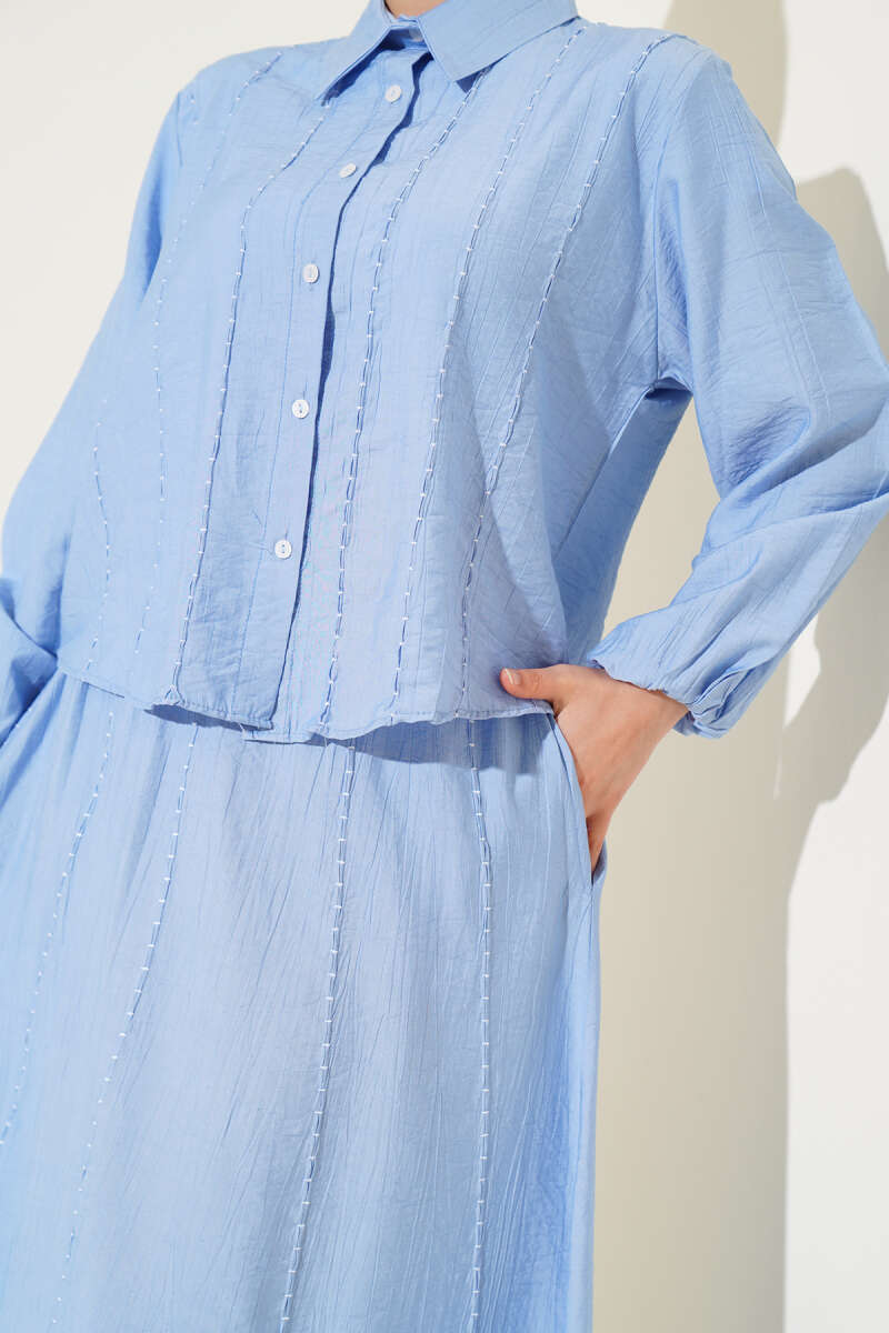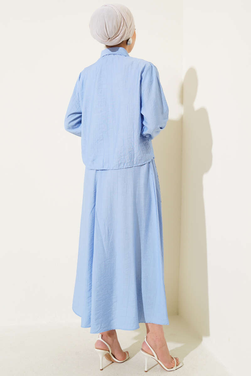 Önü Bağcık Detaylı Etekli İkili Takım Bej