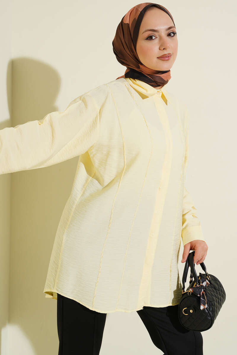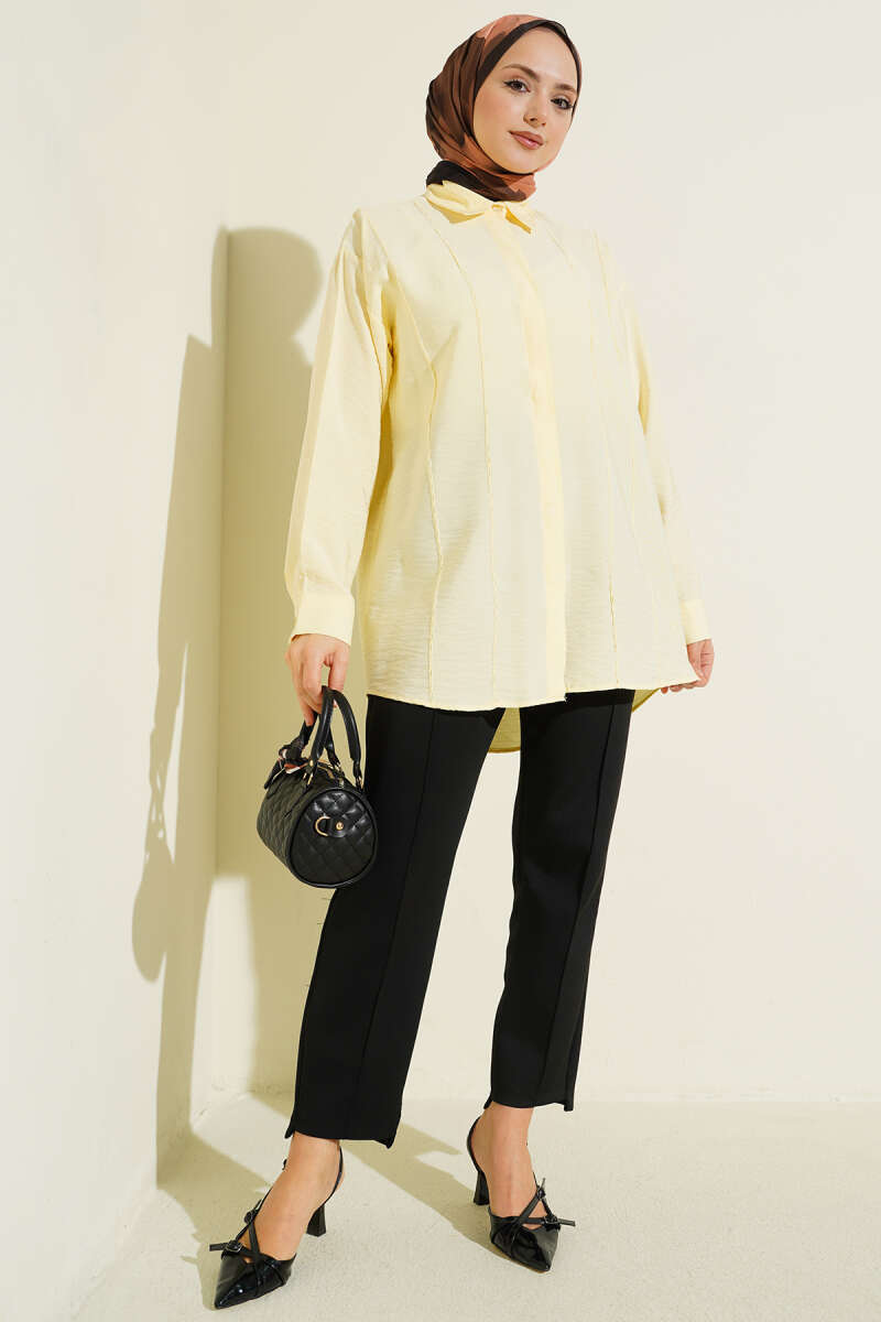 Önü Dikiş Detaylı Salaş Gömlek Sarı