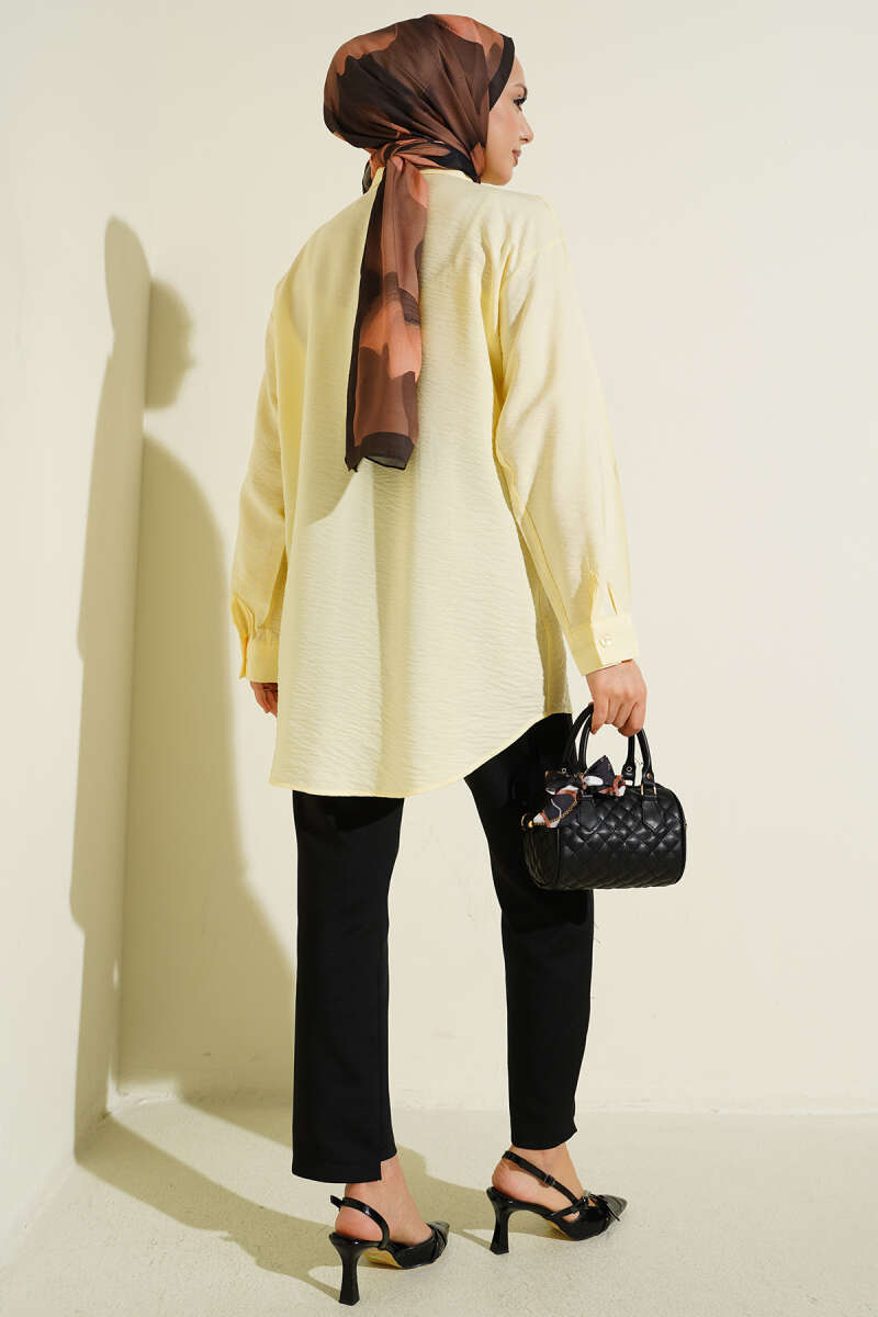 Metal Düğmeli Omuz Pelerinli Gömlek Sarı