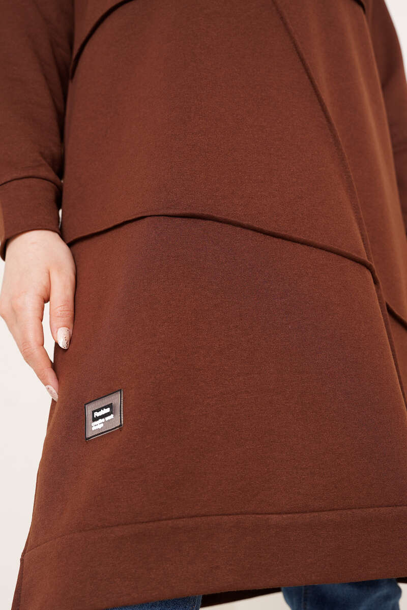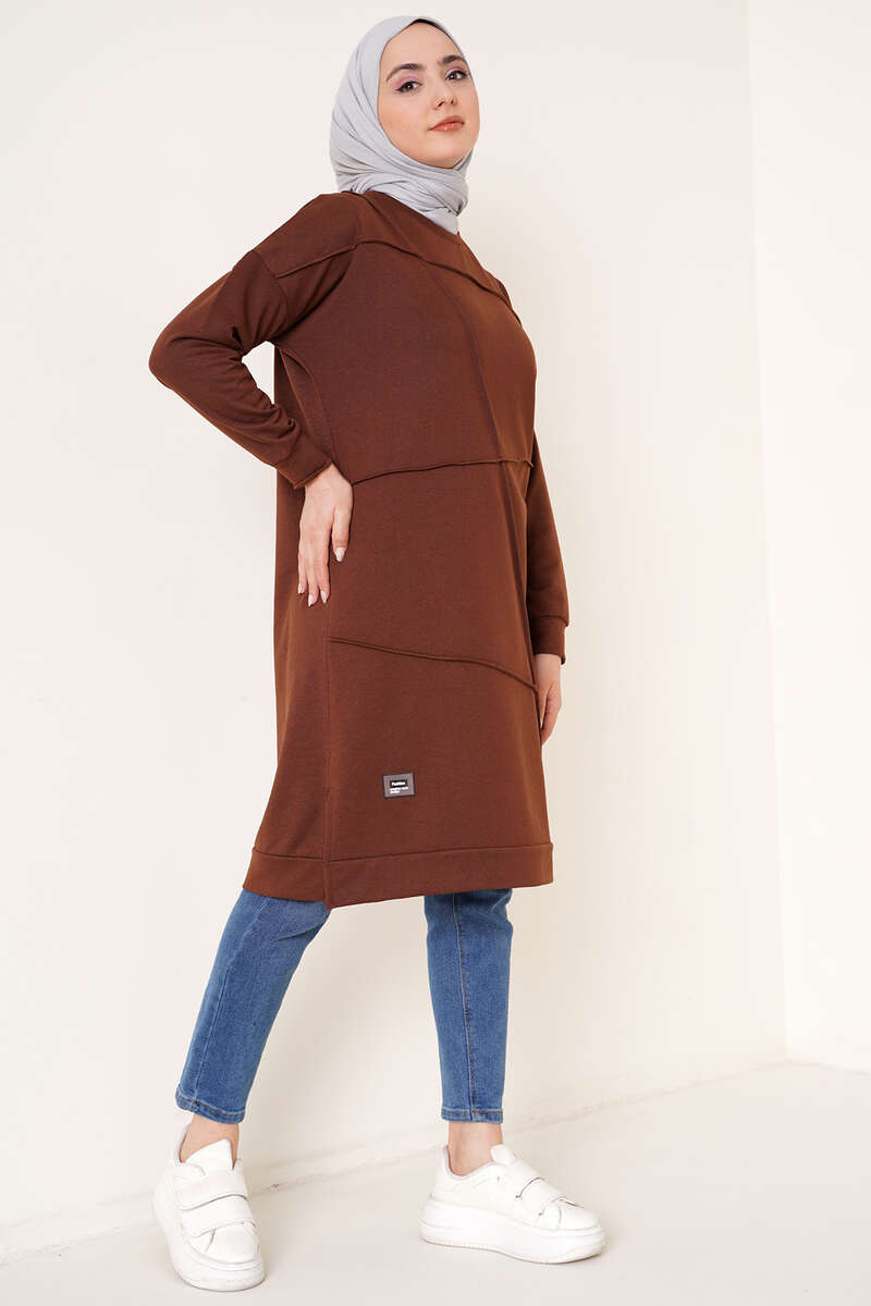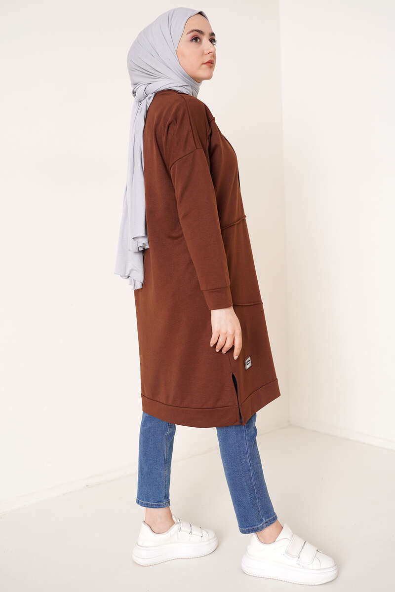 Önü Dikişli Armalı Tunik Kahve