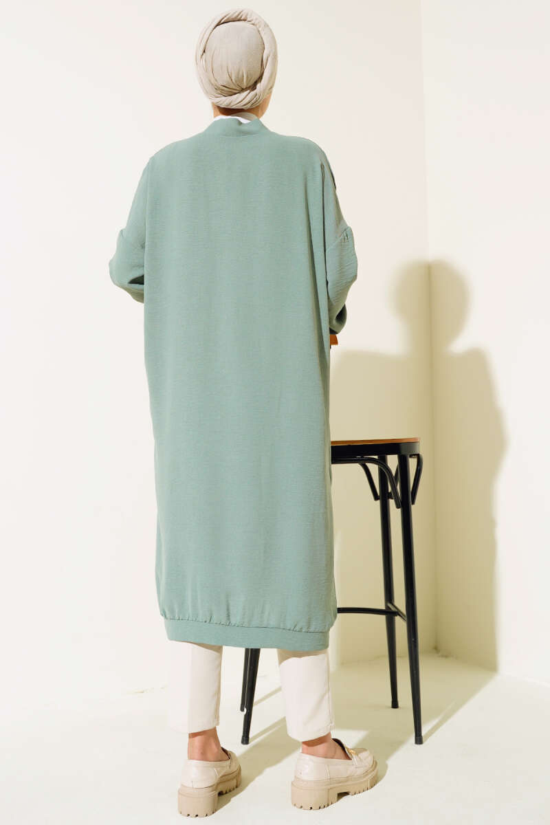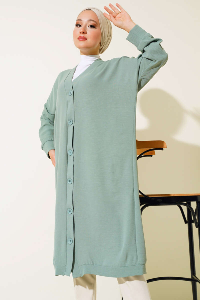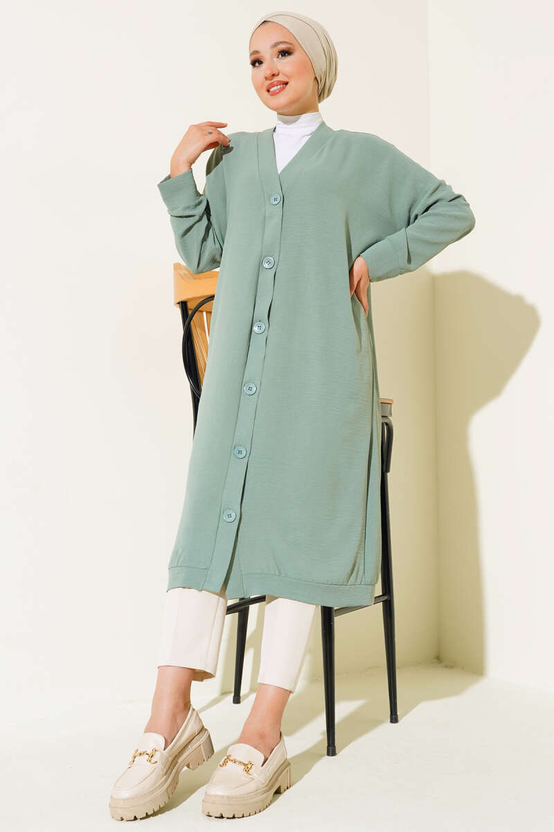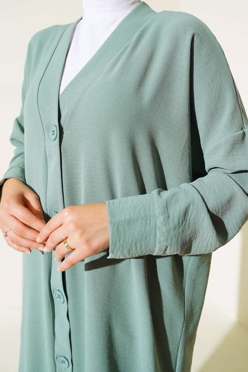 Önü Düğmeli Ayrobin Çağla Yeşili Uzun Hırka