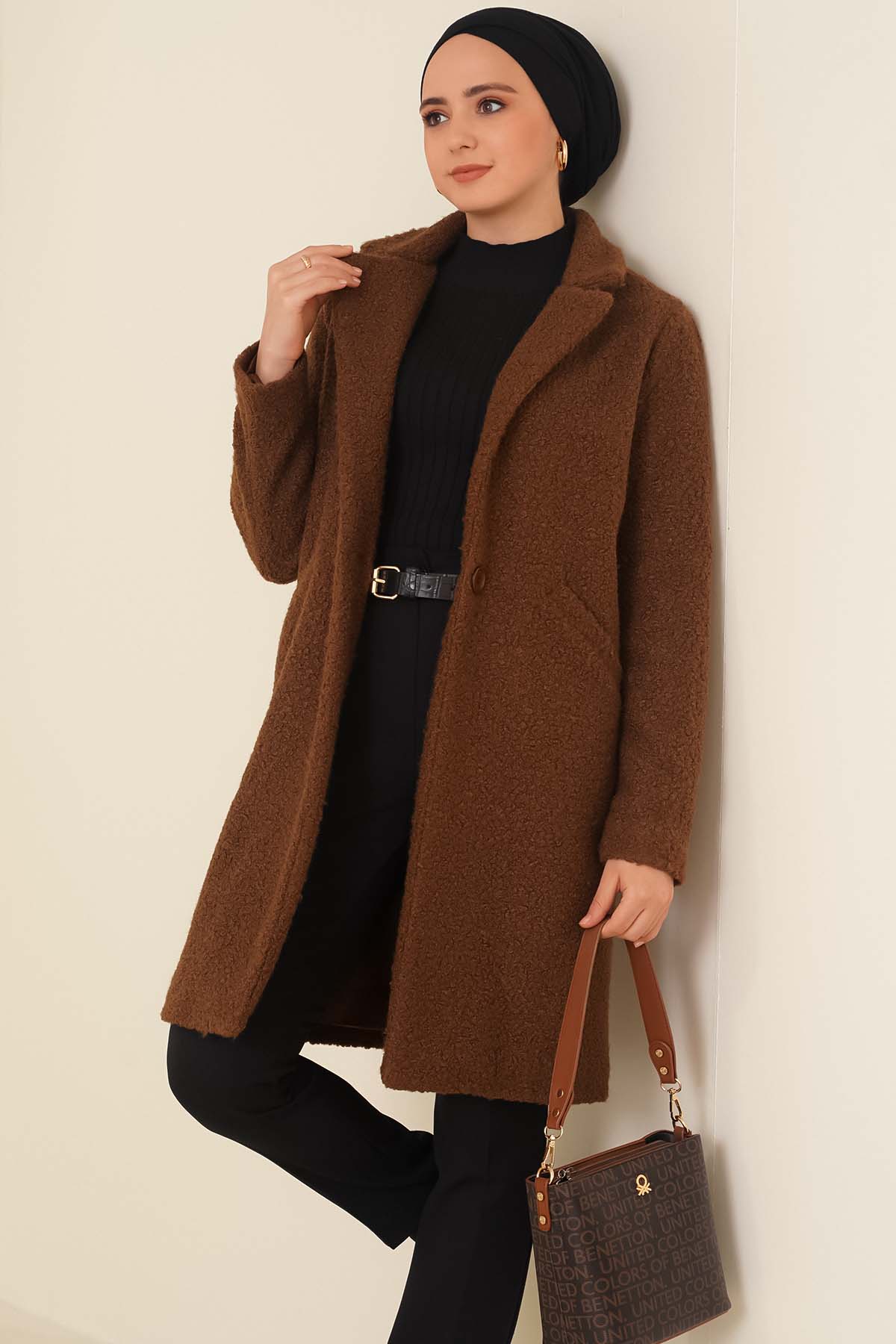 Önü düğmeli kaban yeni sezon modeldir. Ekru renkli kruvaze yakalıdır. İçi astarlıdır. Çift fleto ceplidir. Renk seçeneği mevcuttur.