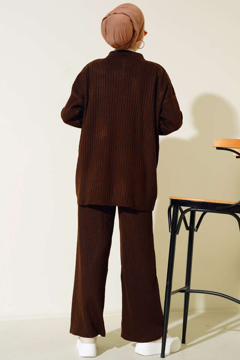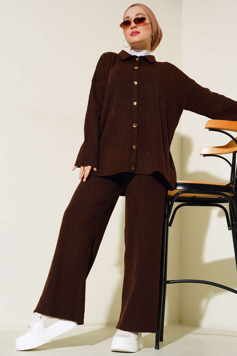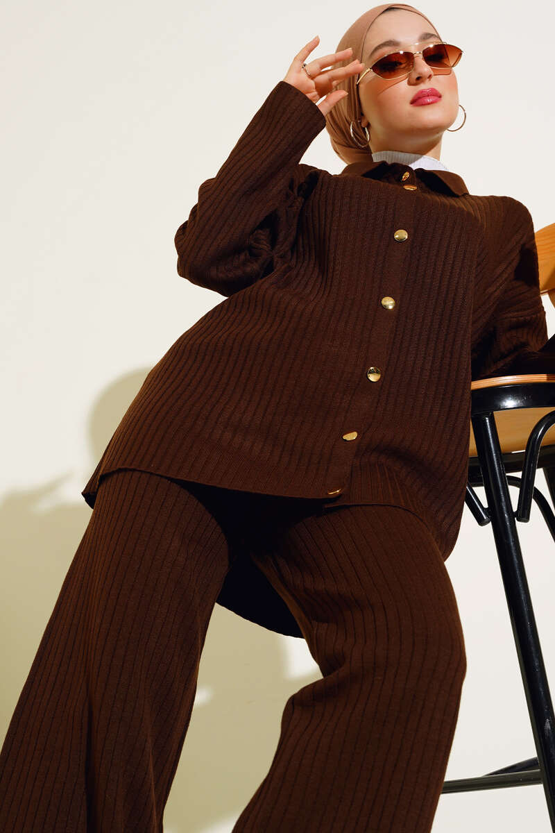 Yeni sezon ikili takım modelimizi duruşuyla çok beğeneceksiniz. Tunik modelimiz boydan gold düğmelidir. Pantolonumuzun beli lastiklidir. Geniş paça modeldir. Cepsizdir. İkili takım modelimiz sportif ve şıklık tarz yakalamıştır.