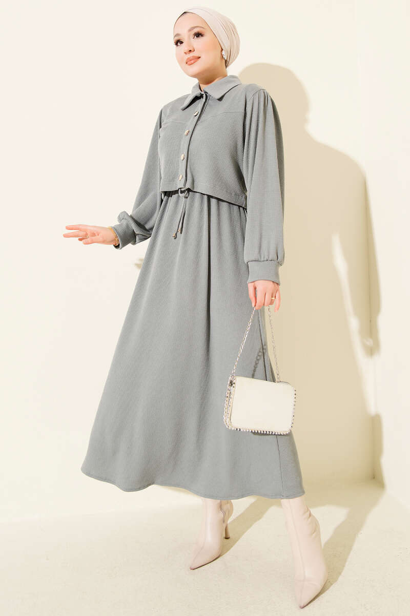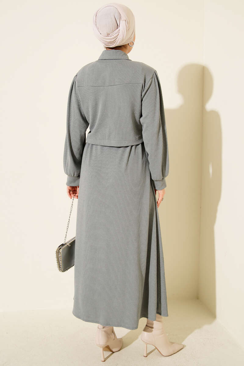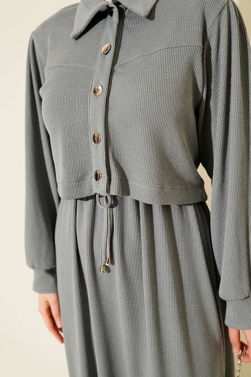 Düğmeli Pelerinli Triko Elbise Takım Taş