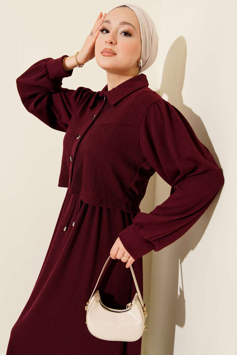 Yan Şerit Detaylı Triko İkili Takım Bordo