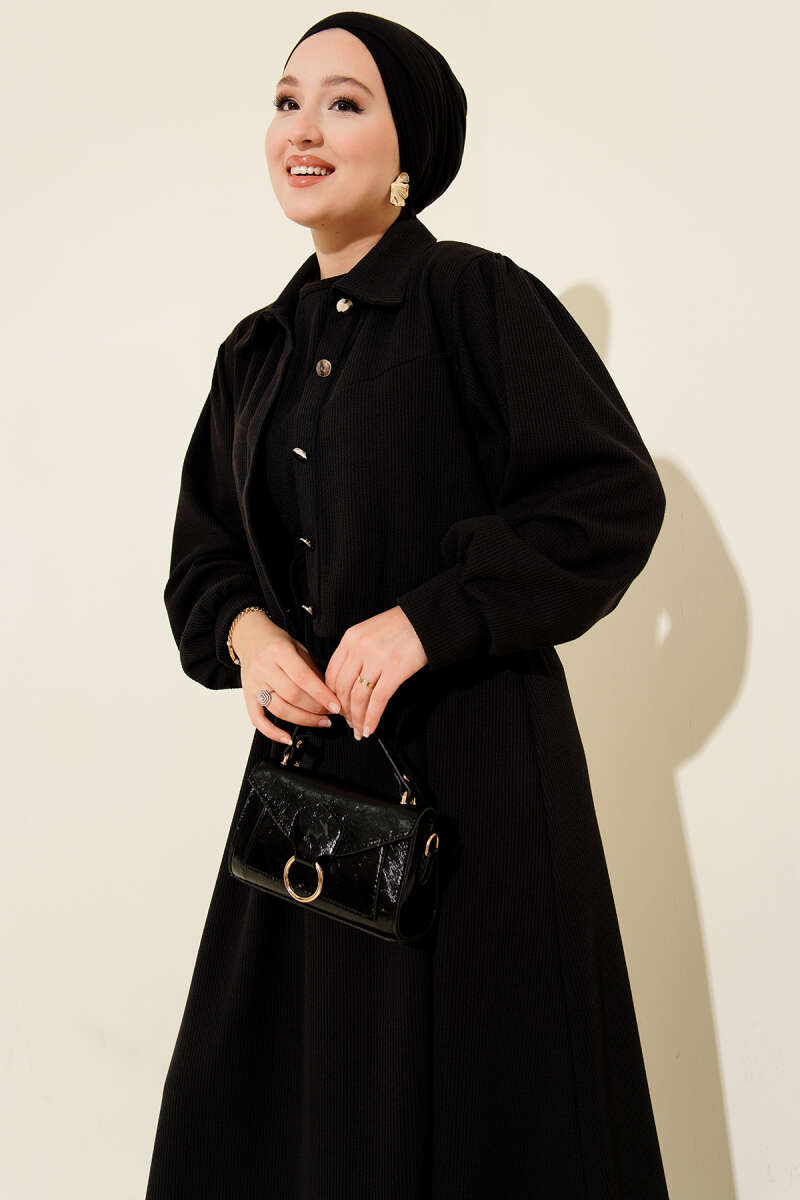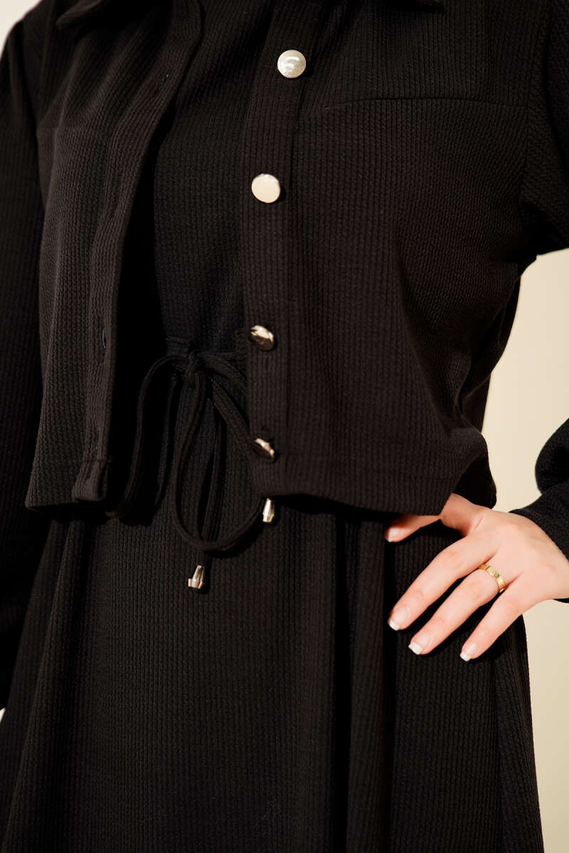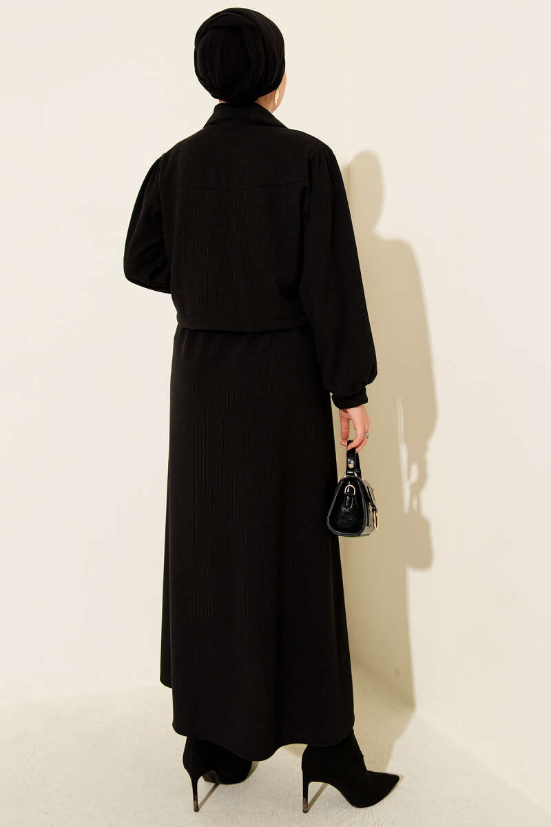Düşük Omuz Bürümcük Kimono İkili Takım Siyah