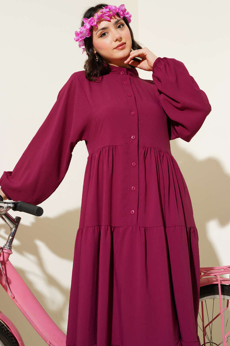 Pelerin Detaylı Pileli Triko Elbise Bordo