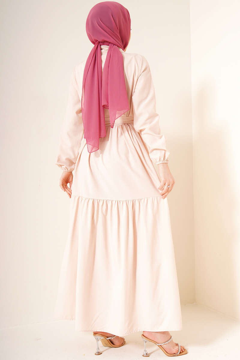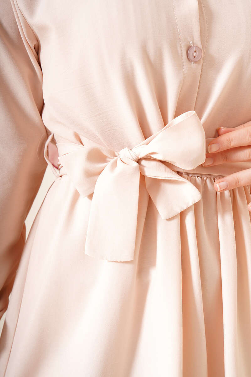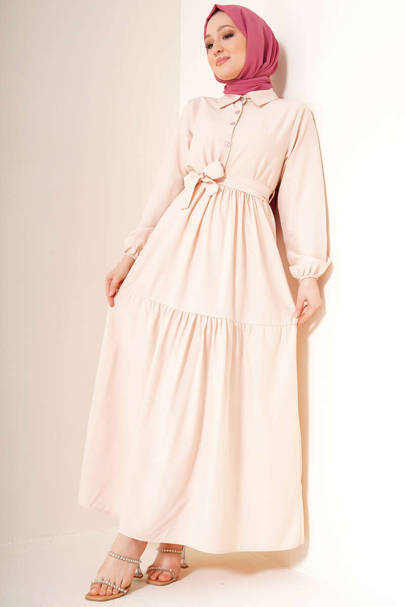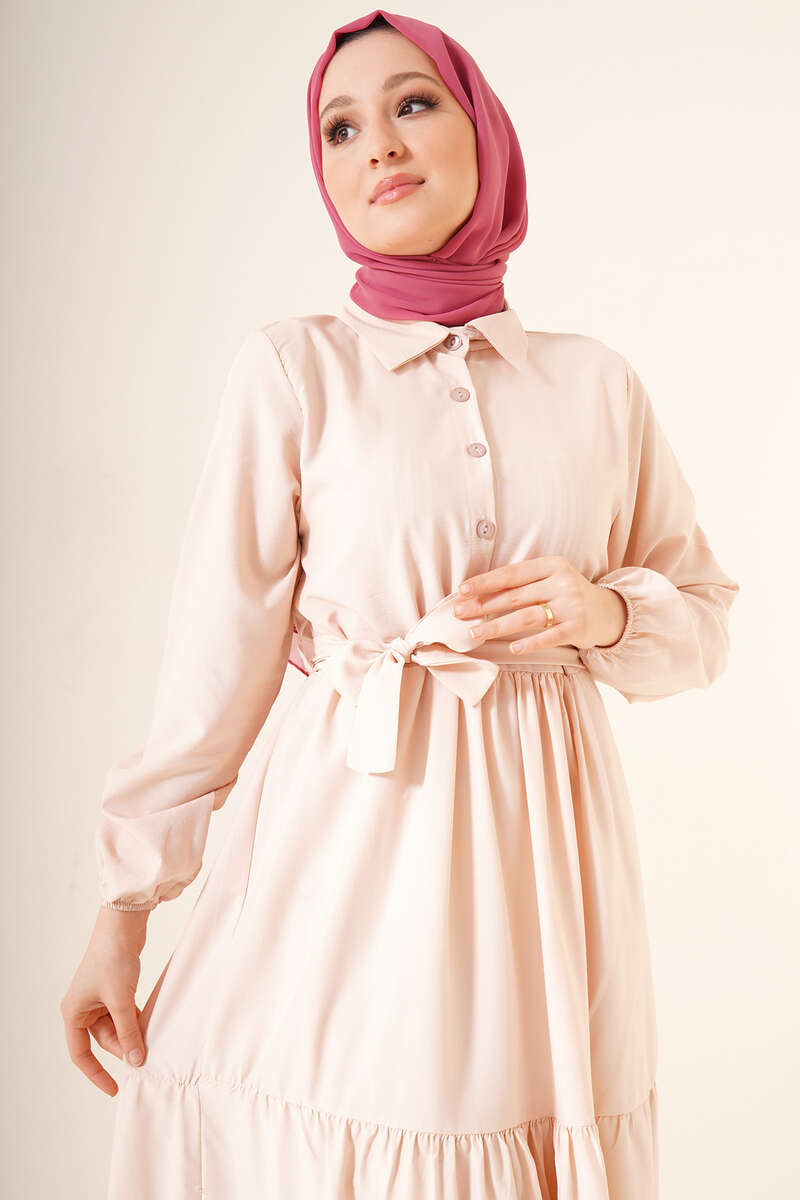 Önü Düğmeli Kat Model Elbise Bej
