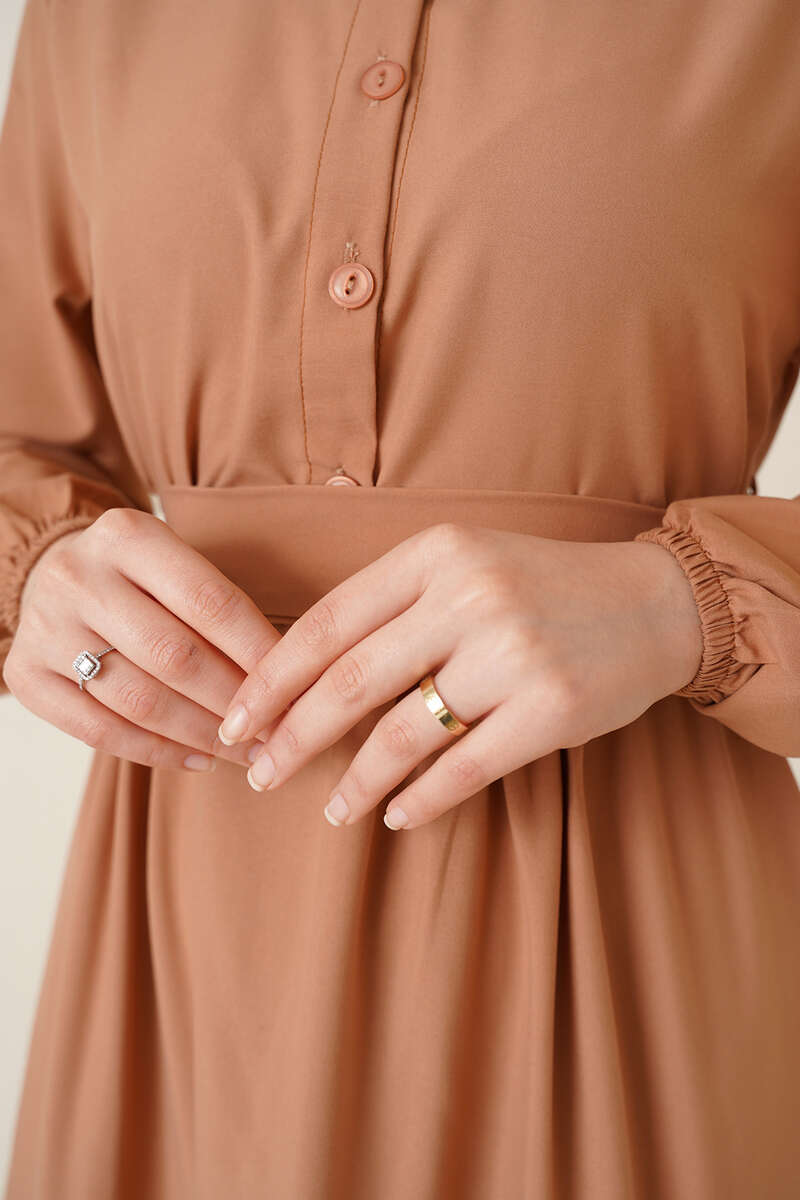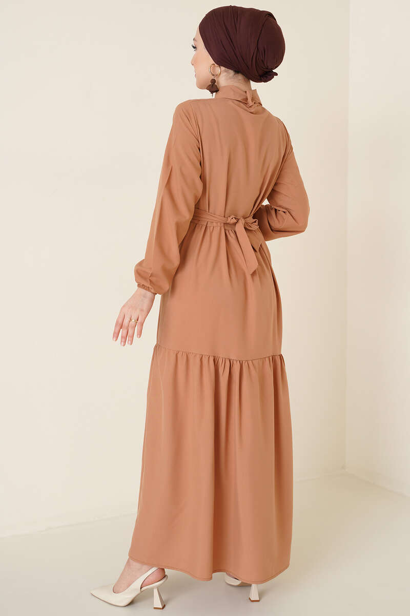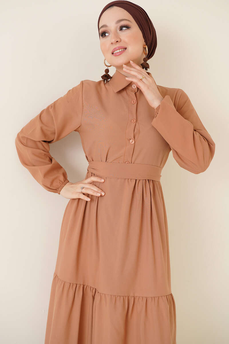 Yeni sezon elbisemiz şık ve sade görünümüyle sizler için geldi. Elbisemiz kat modeldir. Önü düğmelidir. Gömlek yakalıdır. Bilekleri lastiklidğir. Kuşağı ve iki adet kemer köprüsü bulunmaktadır. Elbisemizi her ortamda rahatlıkla giyebilirsiniz. Farklı renk seçenekleri mevcuttur.