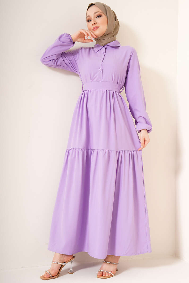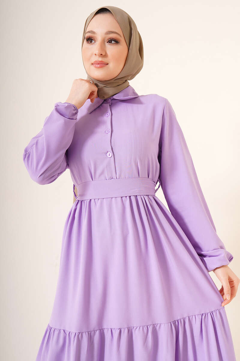 Önü Düğmeli Kat Model Elbise Lila