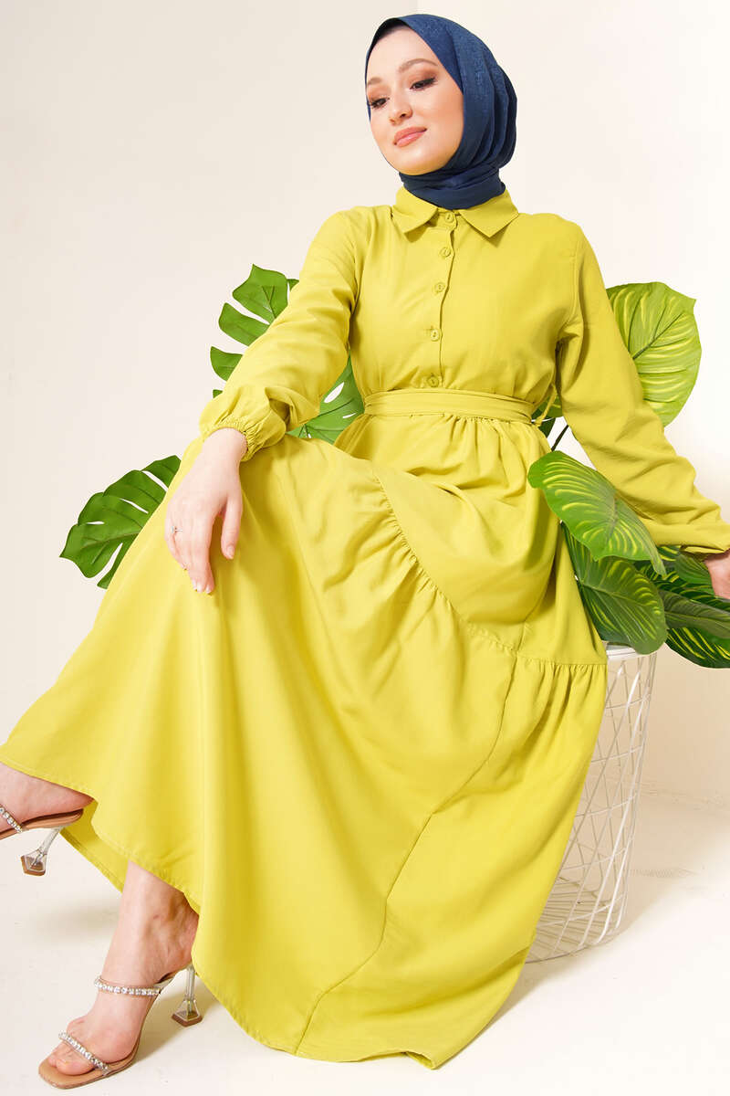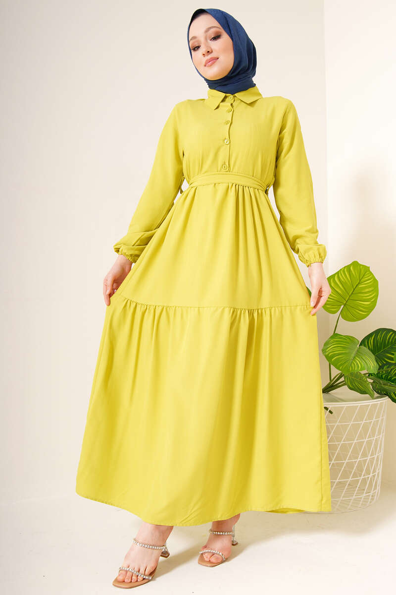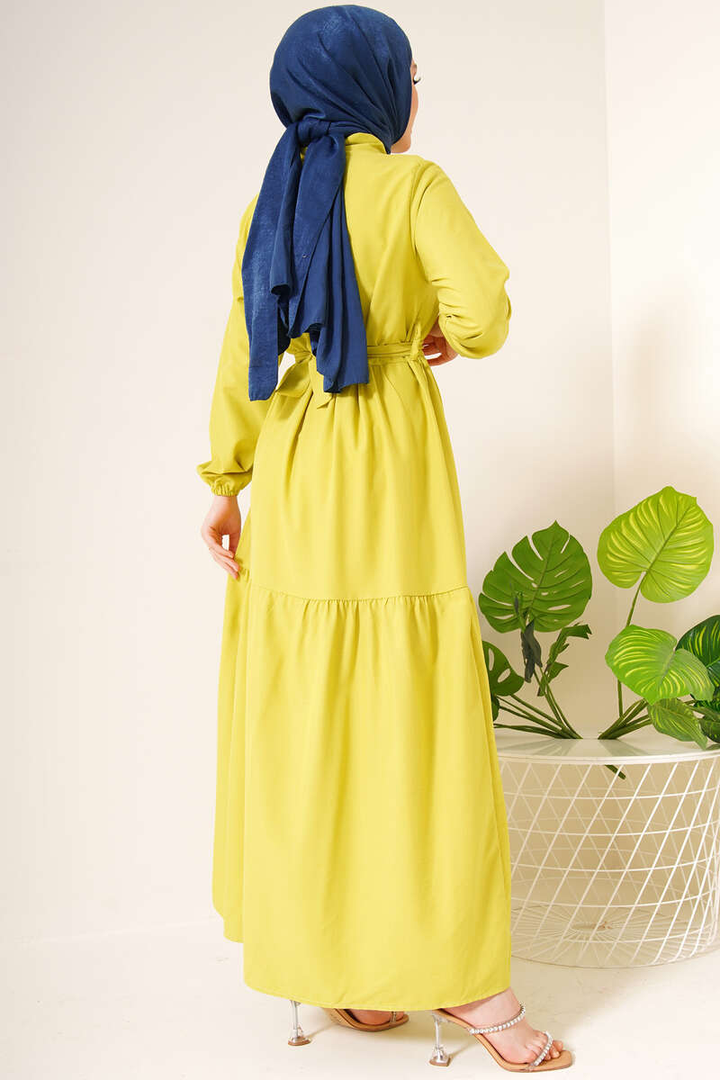 Yeni sezon elbisemiz şık ve sade görünümüyle sizler için geldi. Elbisemiz kat modeldir. Önü düğmelidir. Gömlek yakalıdır. Bilekleri lastiklidğir. Kuşağı ve iki adet kemer köprüsü bulunmaktadır. Elbisemizi her ortamda rahatlıkla giyebilirsiniz. Farklı renk seçenekleri mevcuttur.