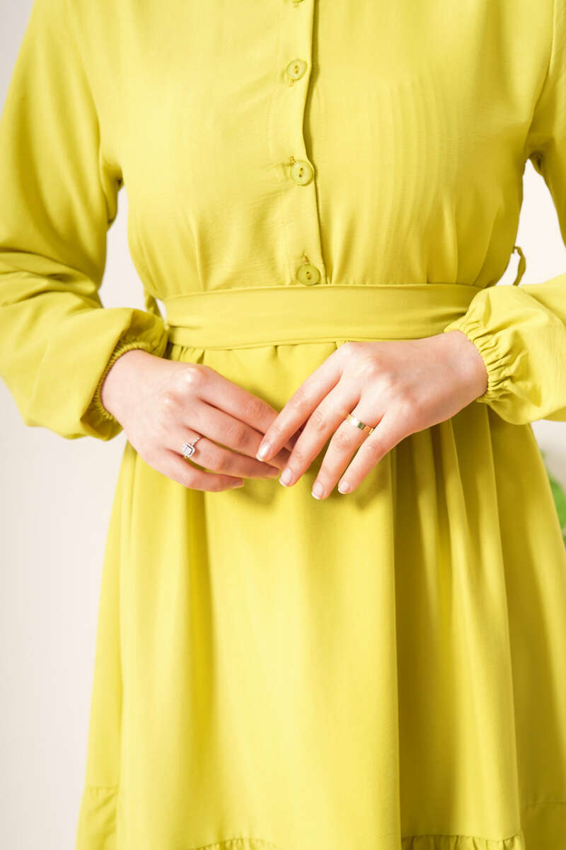 Önü Düğmeli Kat Model Elbise Neon Yeşil