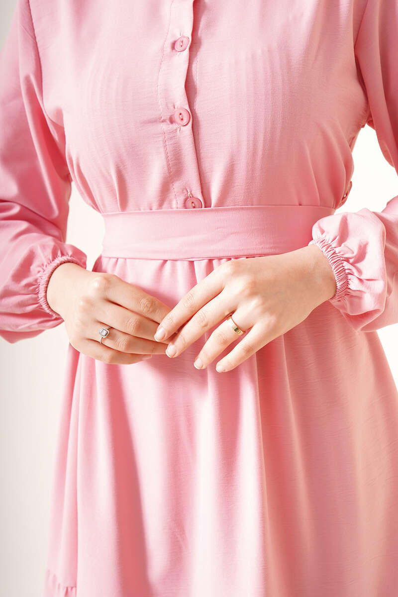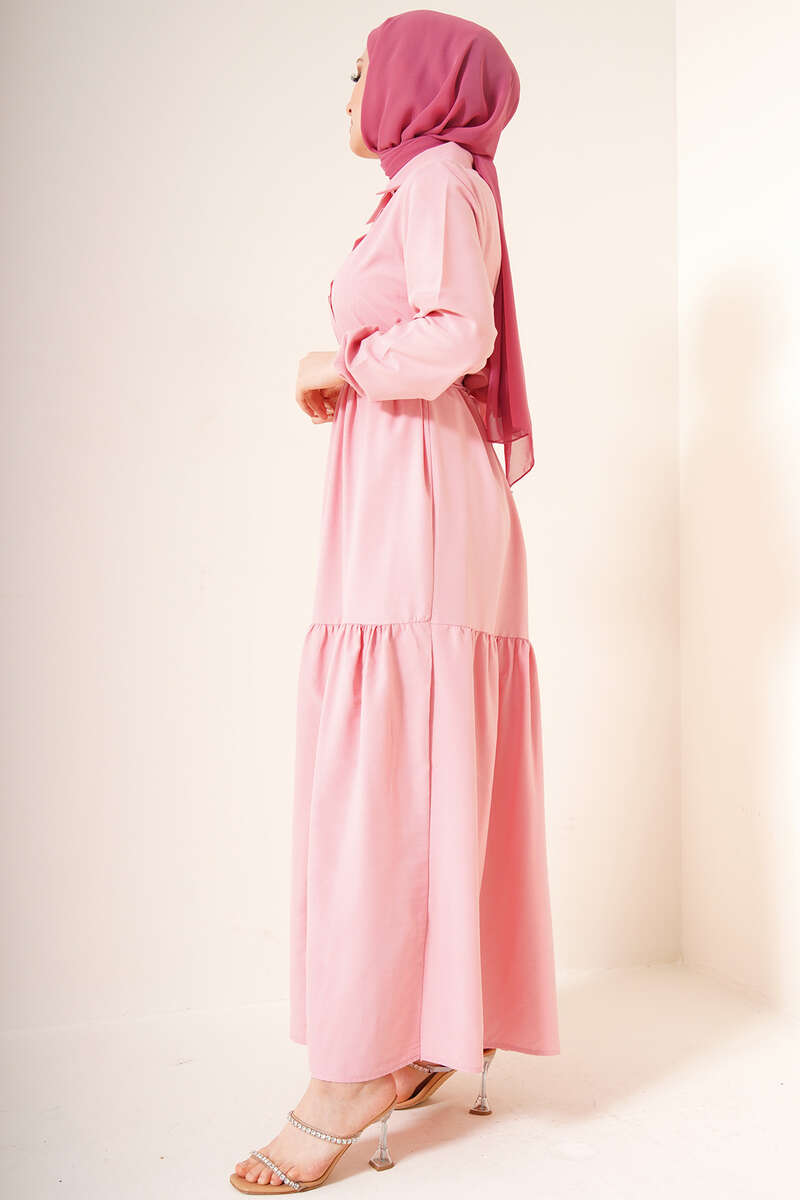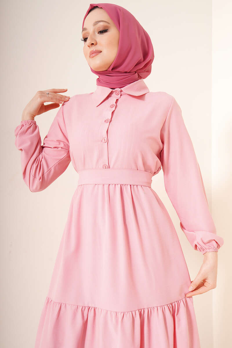 Yeni sezon elbisemiz şık ve sade görünümüyle sizler için geldi. Elbisemiz kat modeldir. Önü düğmelidir. Gömlek yakalıdır. Bilekleri lastiklidğir. Kuşağı ve iki adet kemer köprüsü bulunmaktadır. Elbisemizi her ortamda rahatlıkla giyebilirsiniz. Farklı renk seçenekleri mevcuttur.