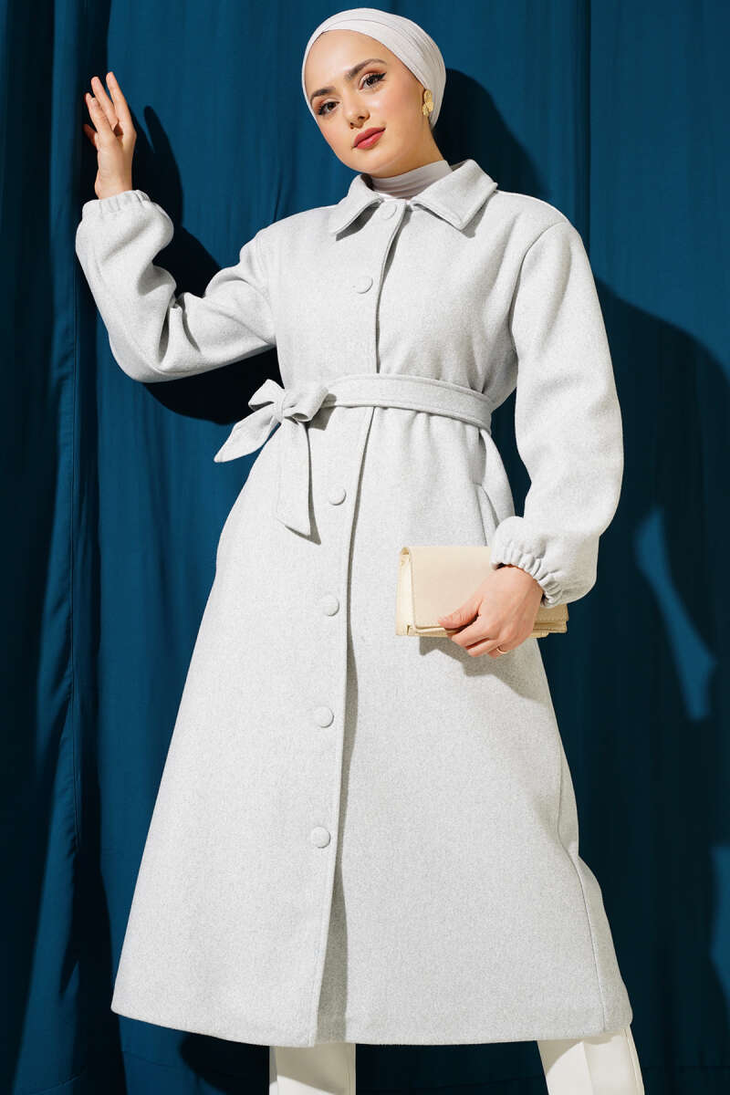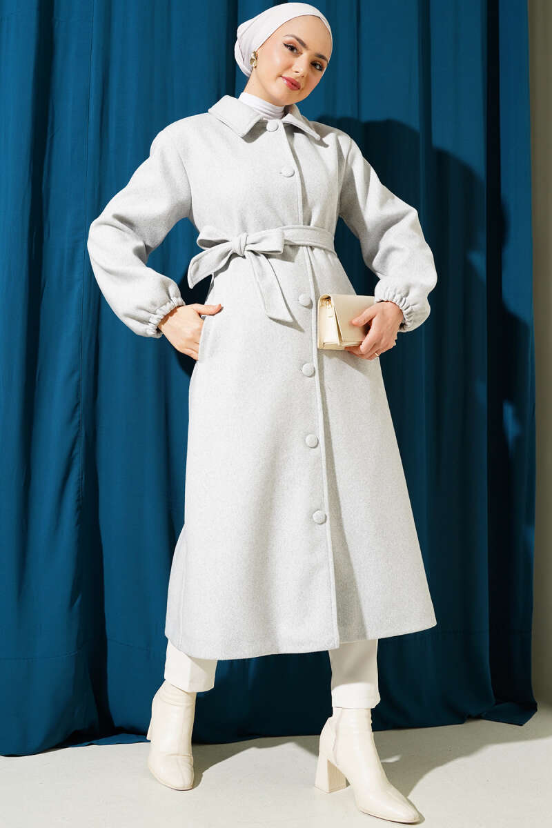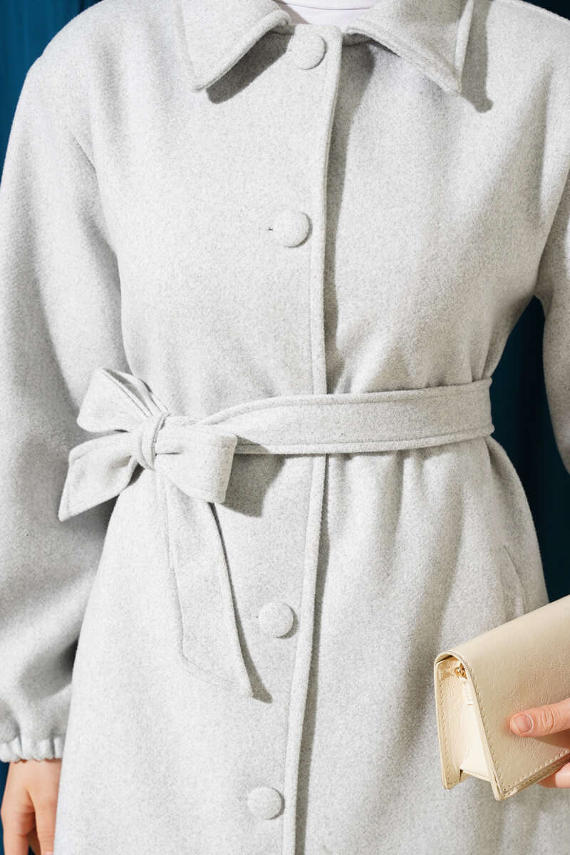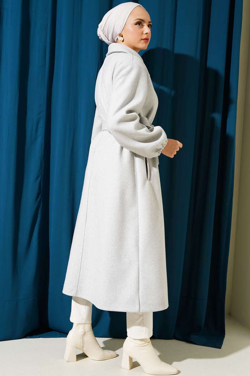 Balon Kol Kısa Kaşe Kaban Gri