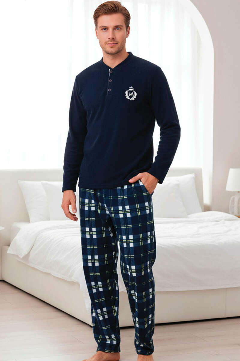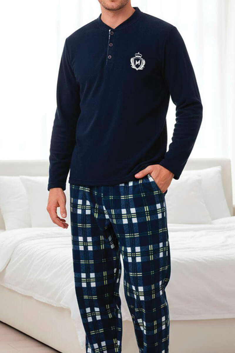 Önü Düğmeli Polar Erkek Pijama Takımı Lacivert