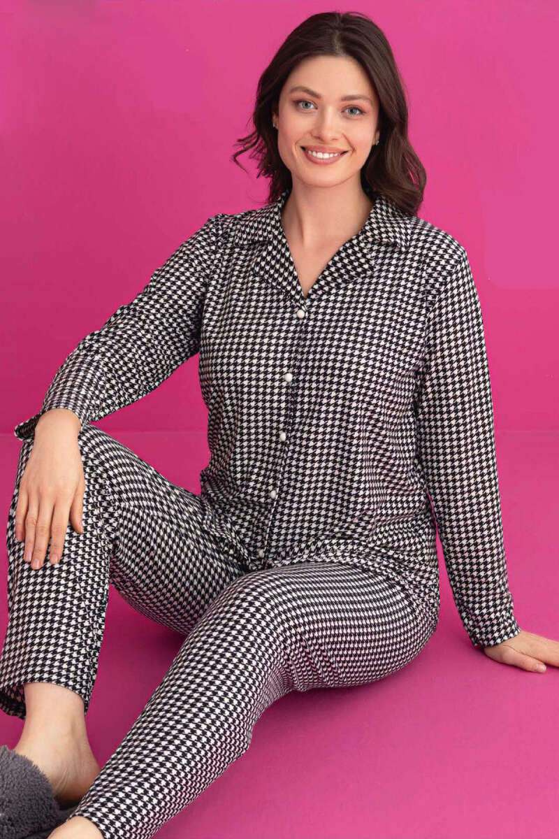 Önü Düğmeli Süet Pijama Takımı Kazayağı