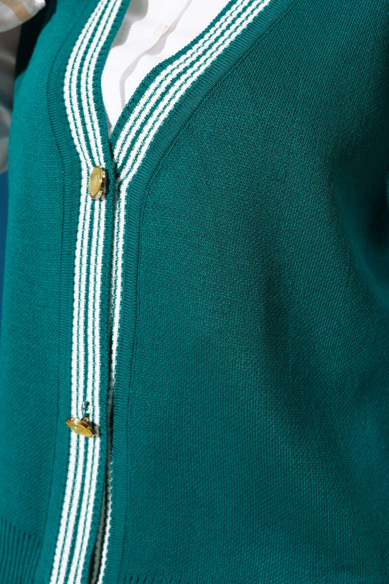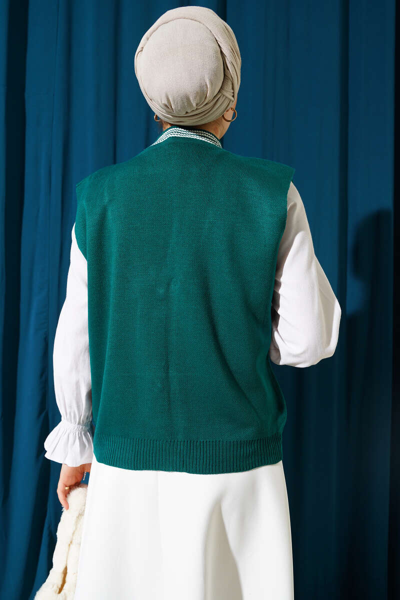 Önü Düğmeli Triko Yelek Zümrüt