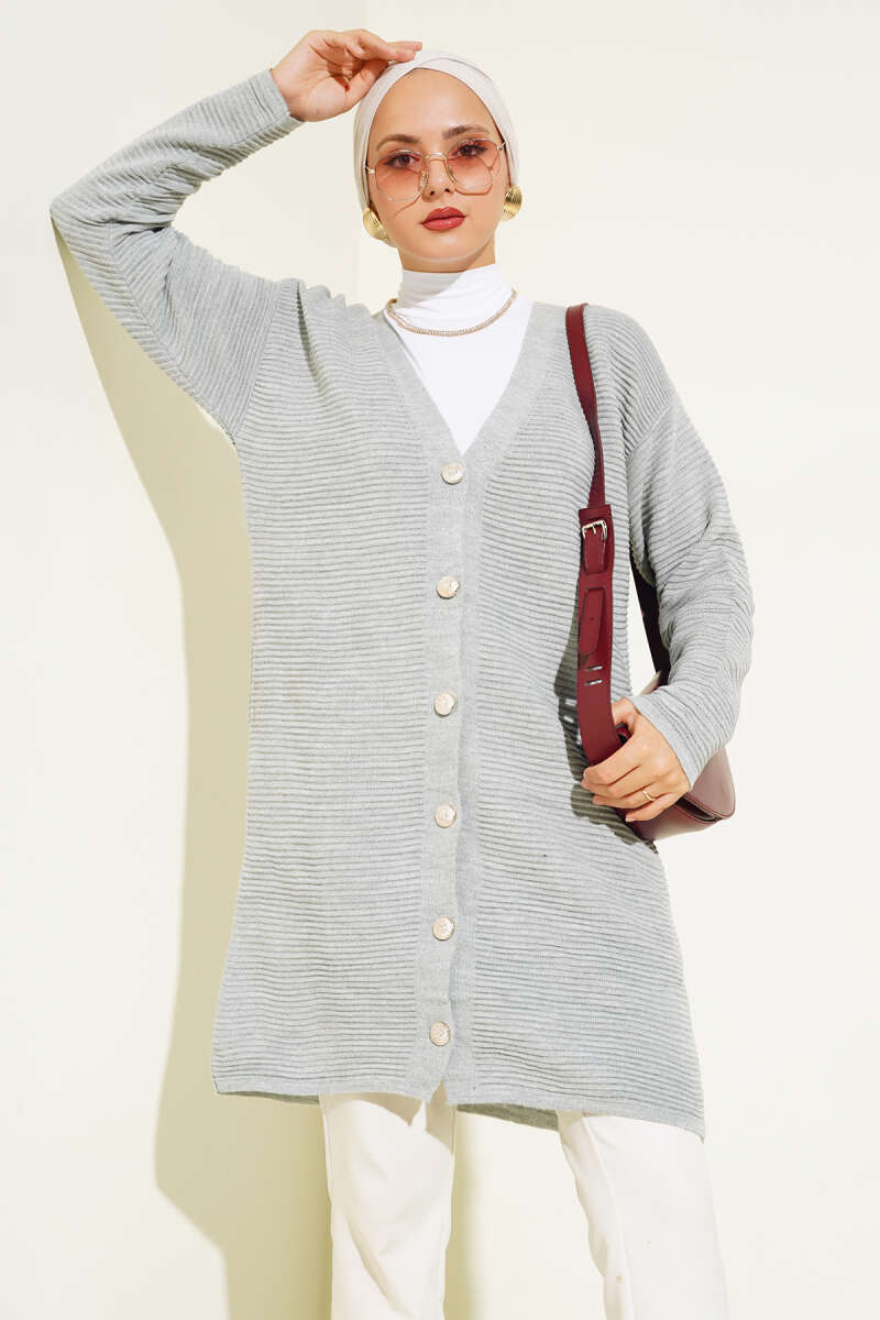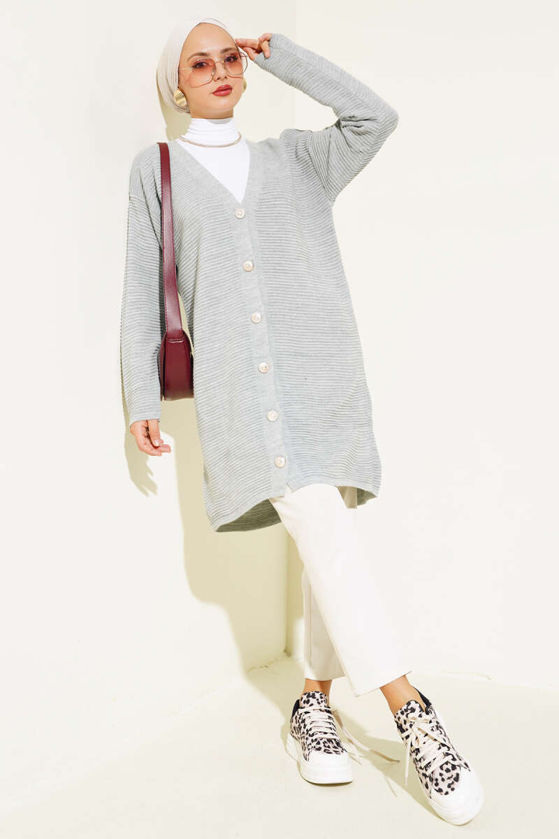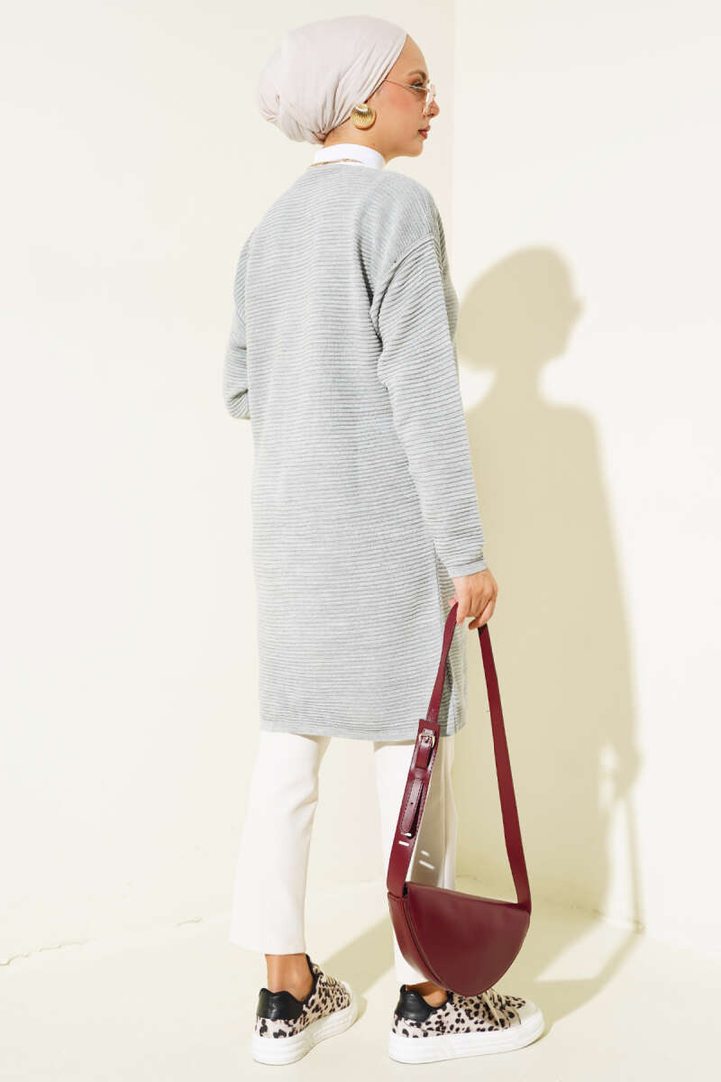 Basic Çift Cepli Uzun Triko Hırka Bej