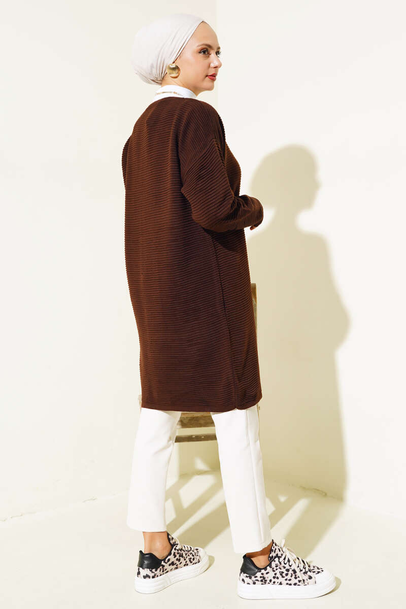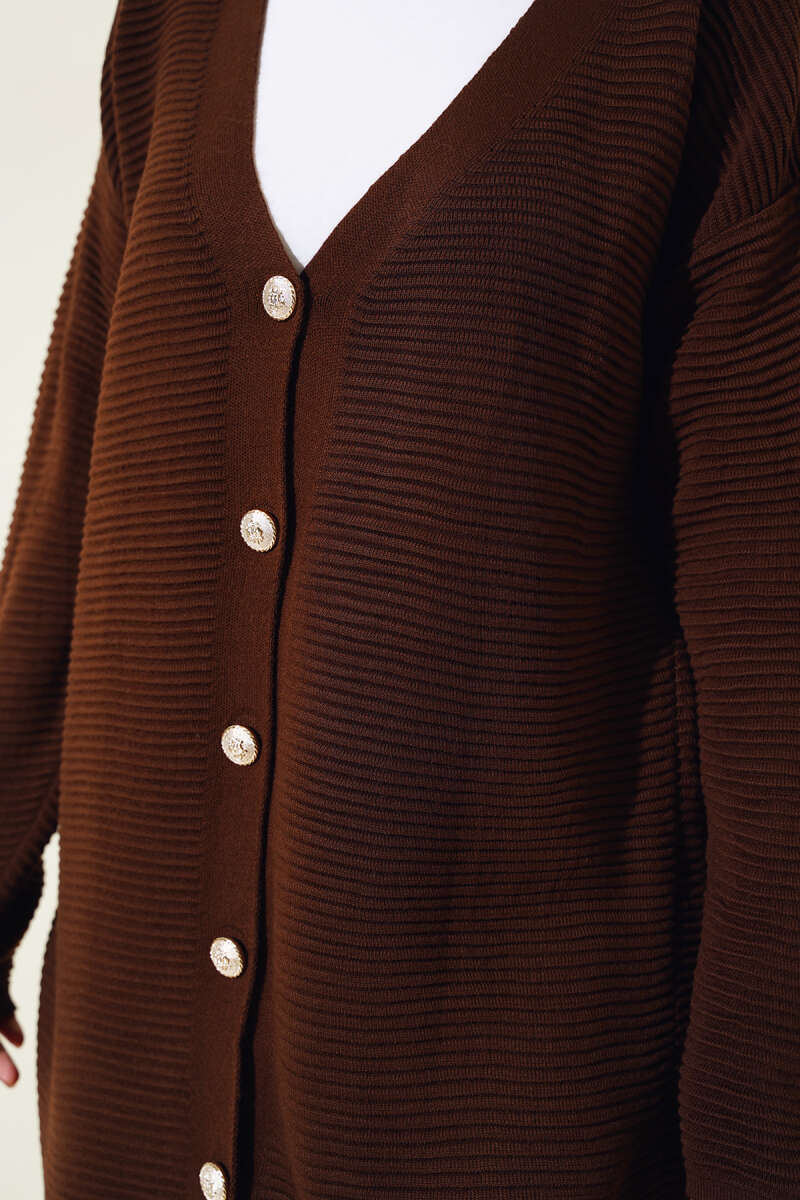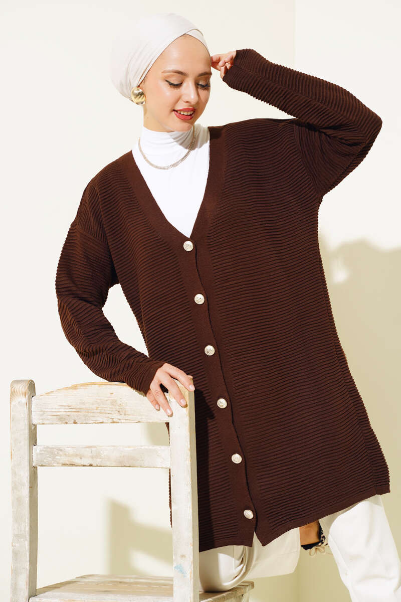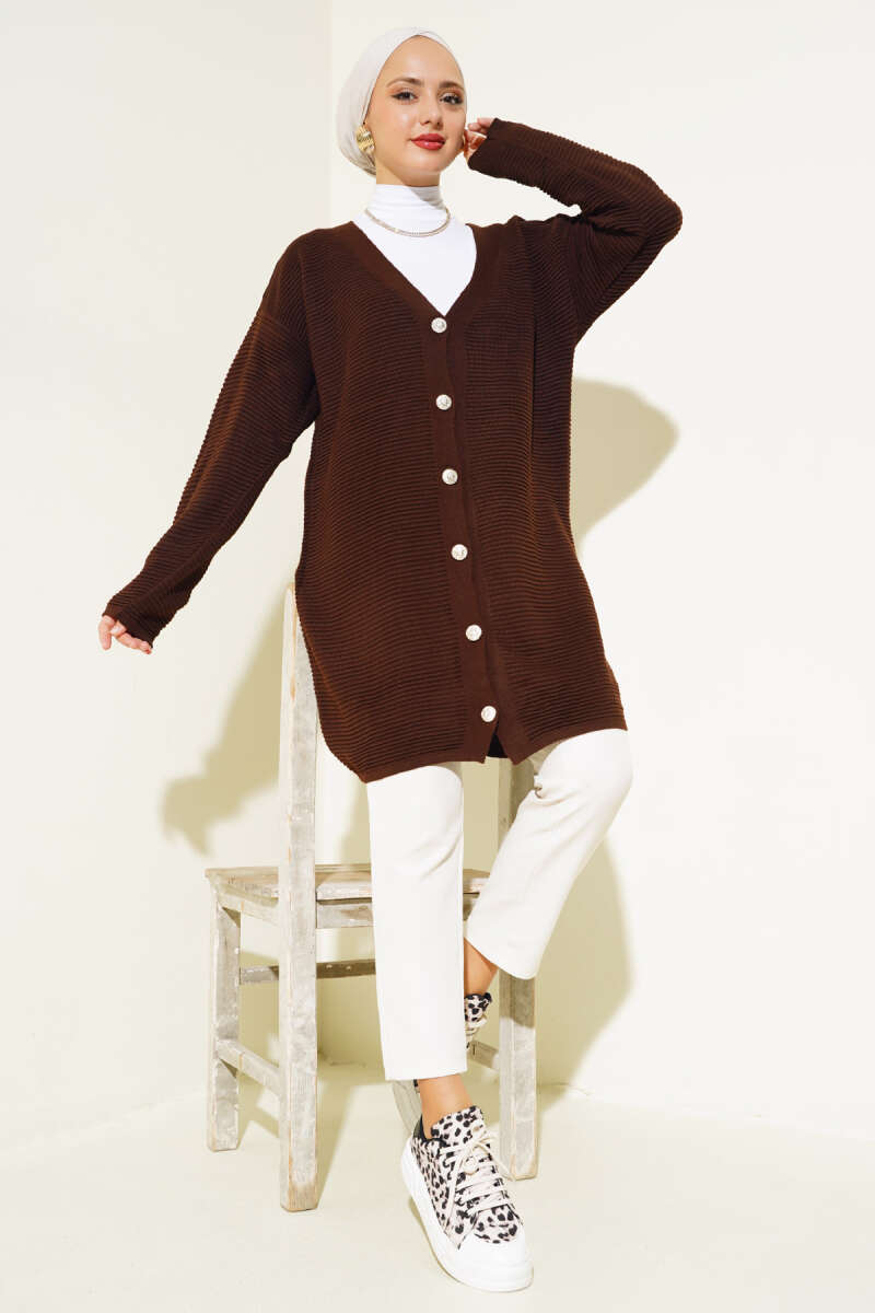 Pirinç Örgü Basic Triko Hırka Nar Çiçeği