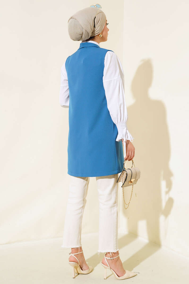 Sezonun favorileri arasında yerini alan yeleğimiz sizlerle beraber. Yeleğimiz kruvaze yakadır. Uzun modeldir. Ceketimizin önü düğmelidir. Önünde iki adet cep süs detayı vardır. Cebinde zincir detayı vardır. Astarsızdır. Sade ve şık yeleğimiz renk seçenekleriyle sizleri bekliyor.