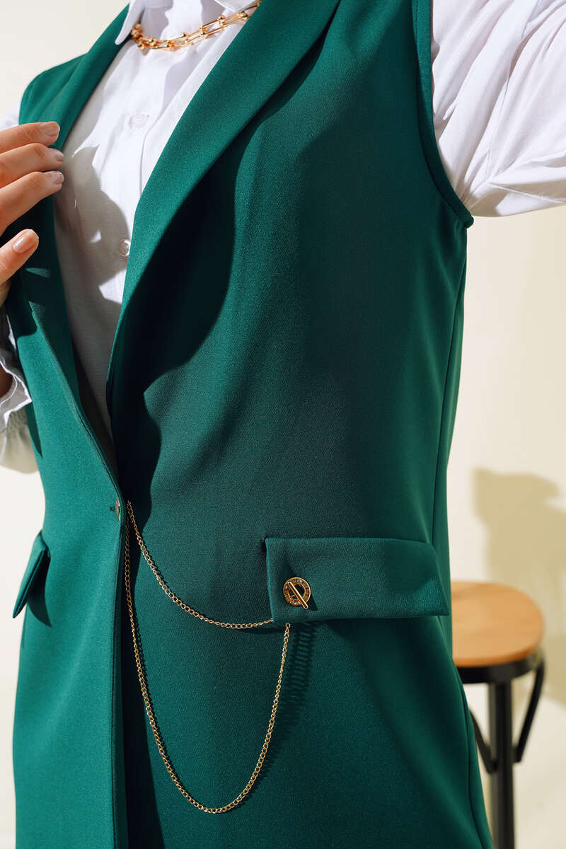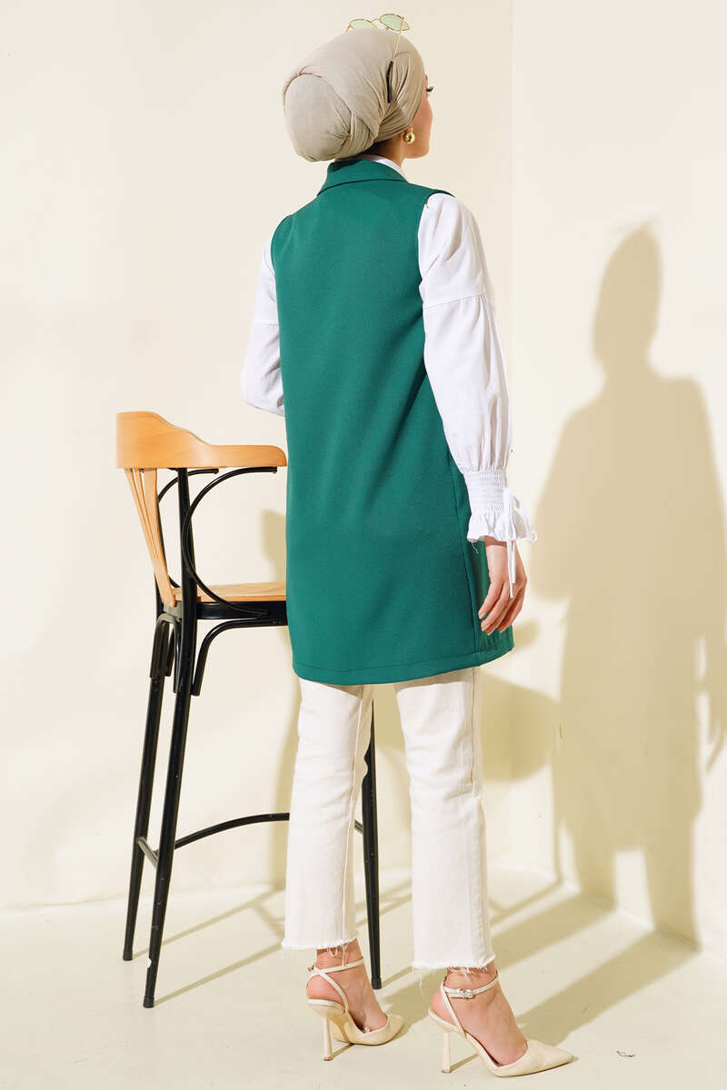 Önü Düğmeli Yelek Zümrüt