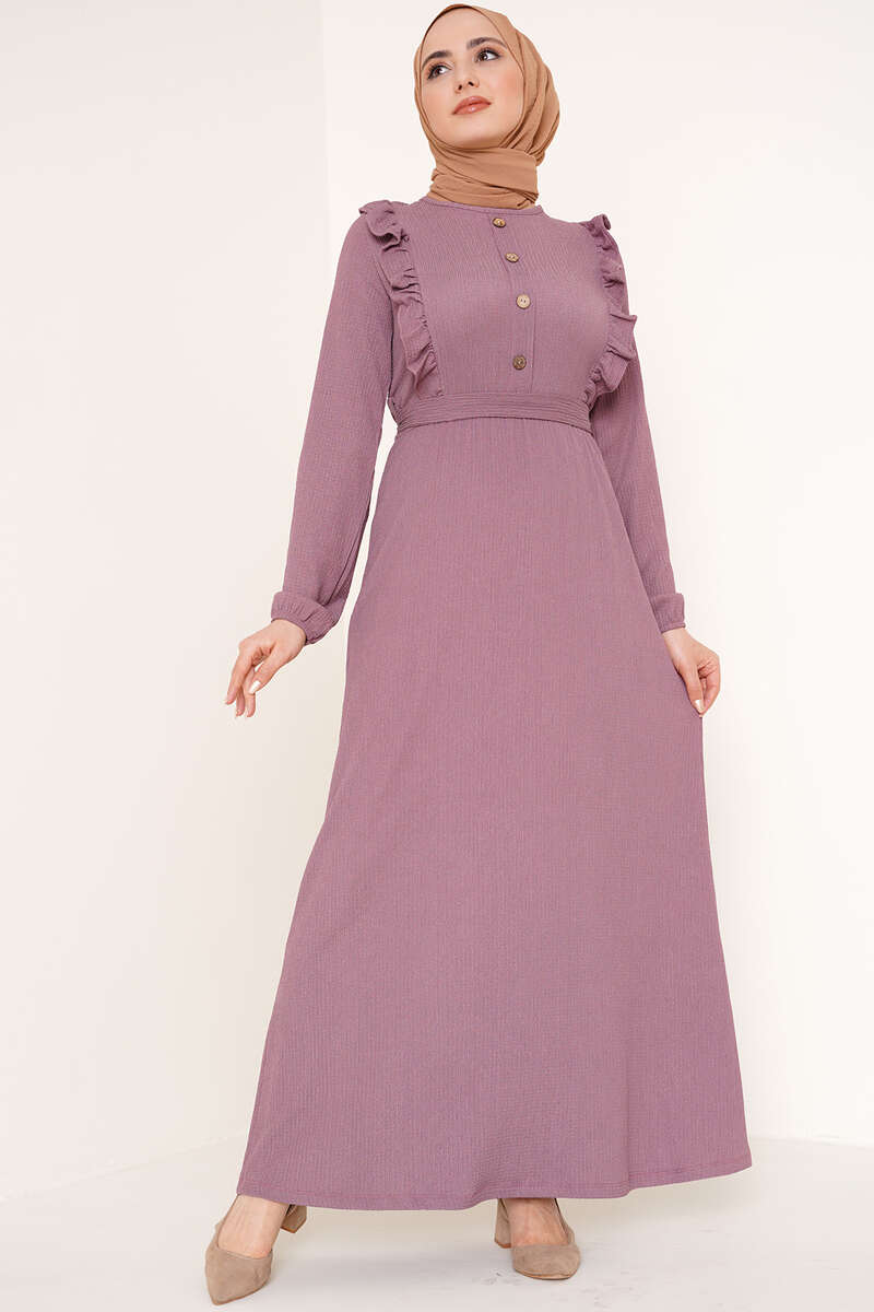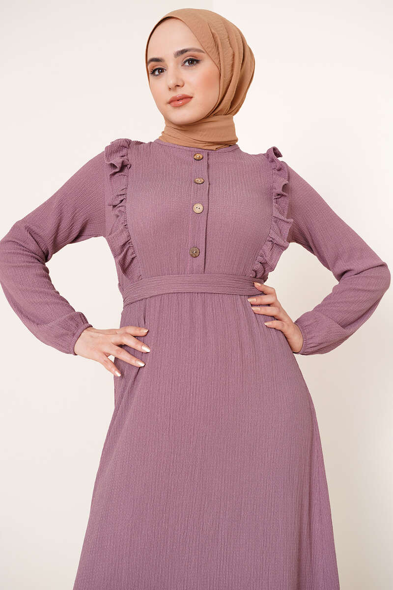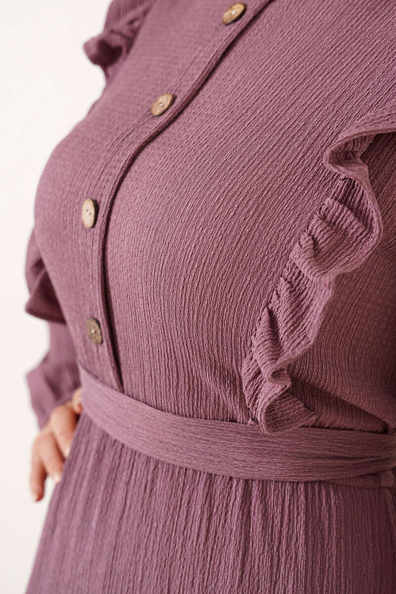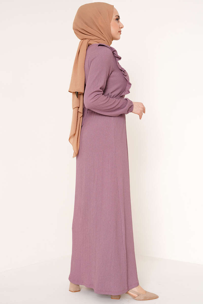 Önü Fırfır Detaylı Bürümcük Elbise Magenta