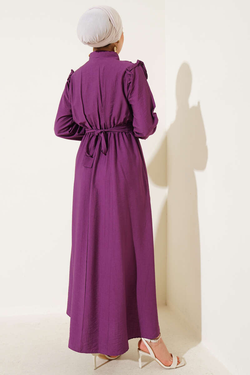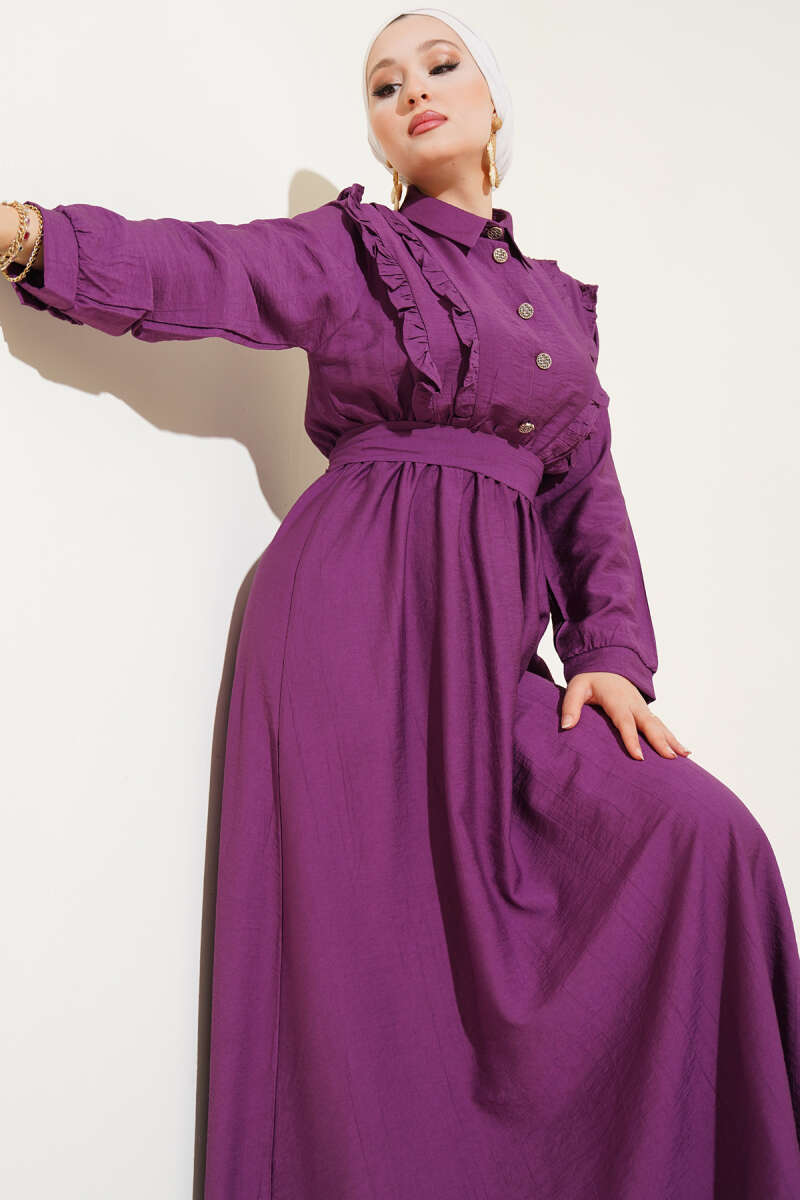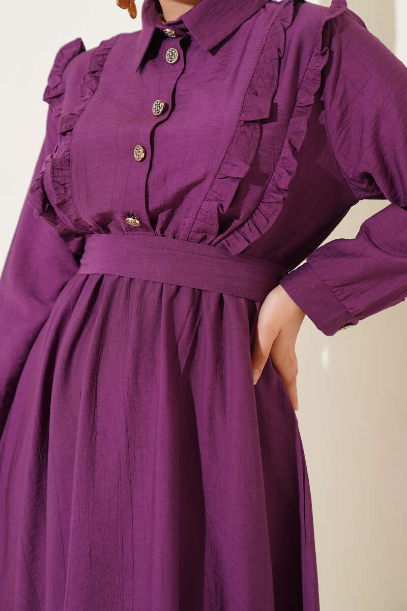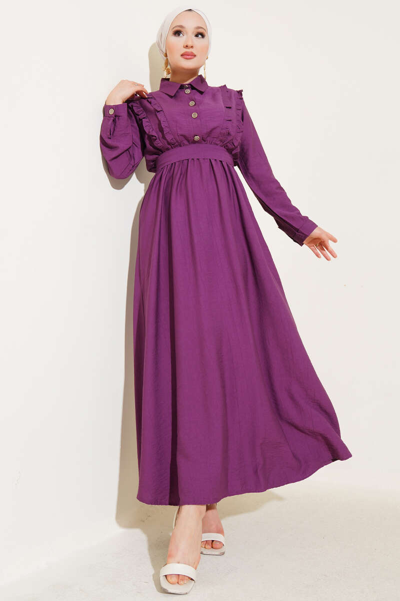 Gömlek Yaka Düğmeli Triko Elbise Nefti