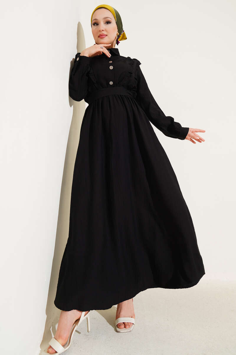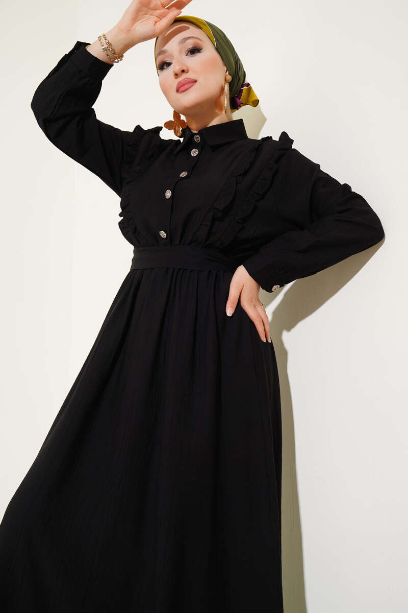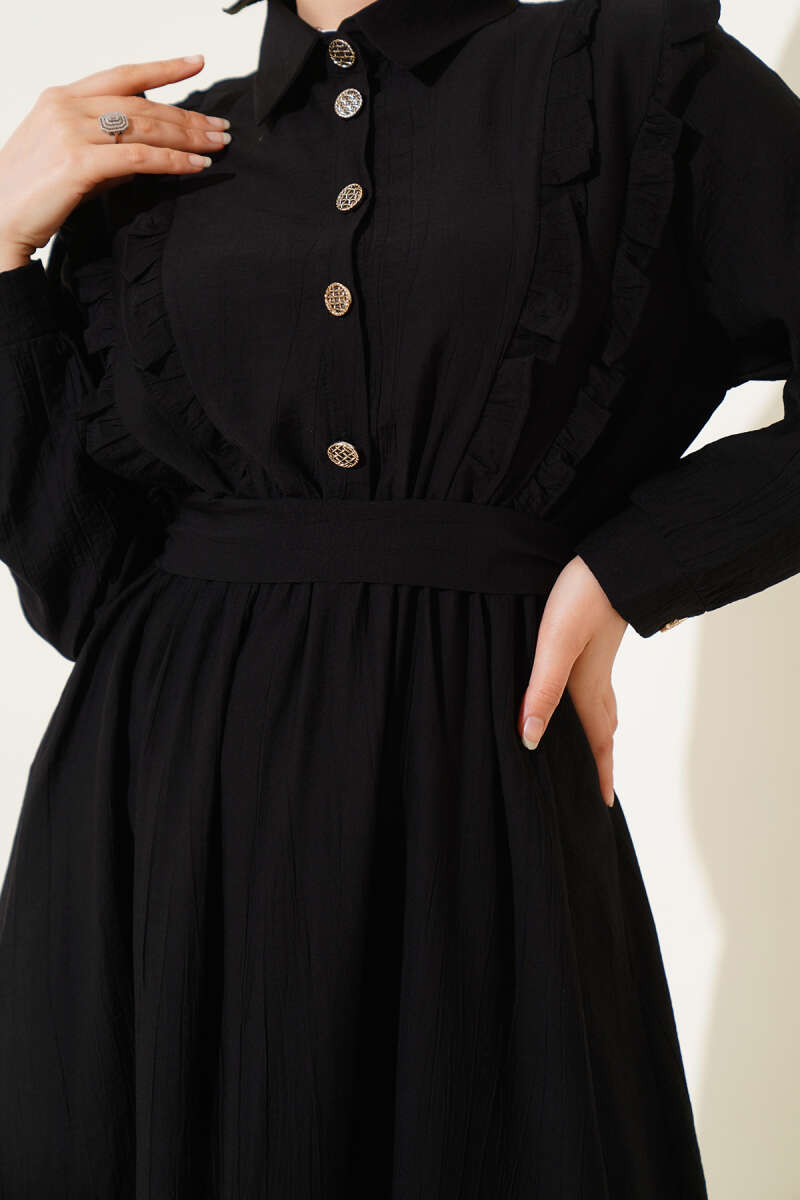 Gömlek Yaka Düğmeli Triko Elbise Siyah