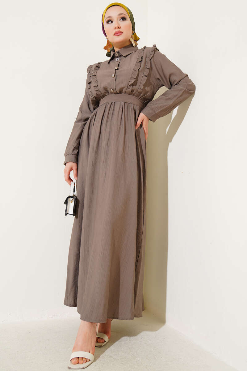 Gömlek Yaka Düğmeli Triko Elbise Kahve