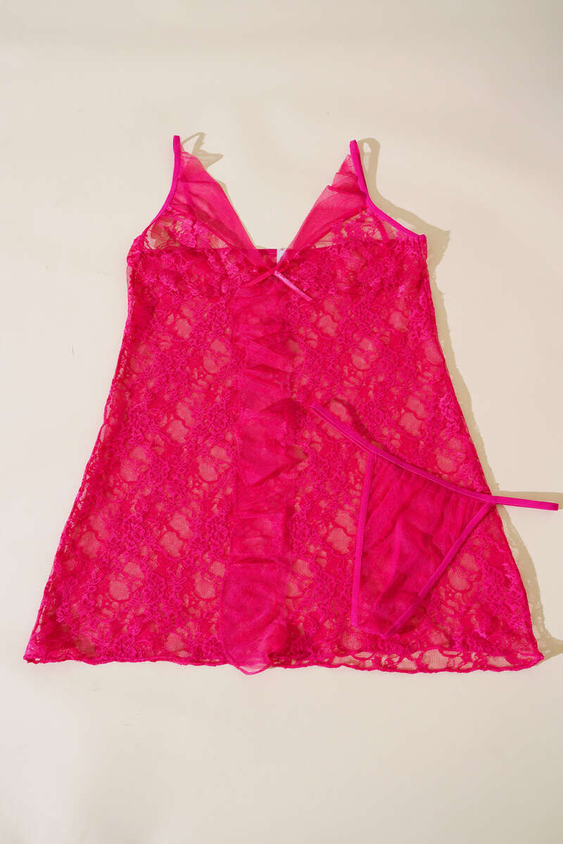 Önü Fırfırlı Dantelli Fantazi Gecelik