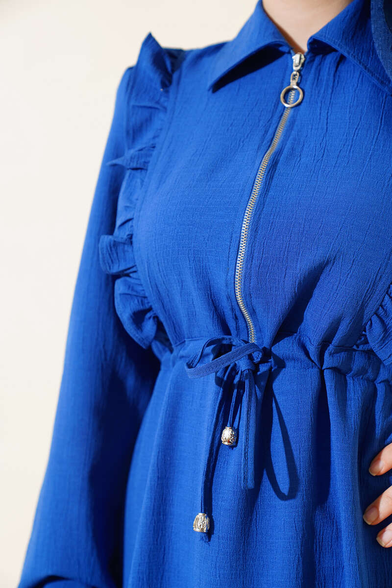 Önü Fırfırlı Fermuarlı Elbise Saks
