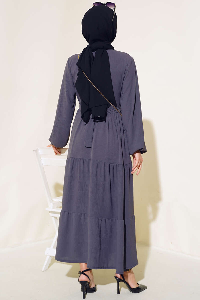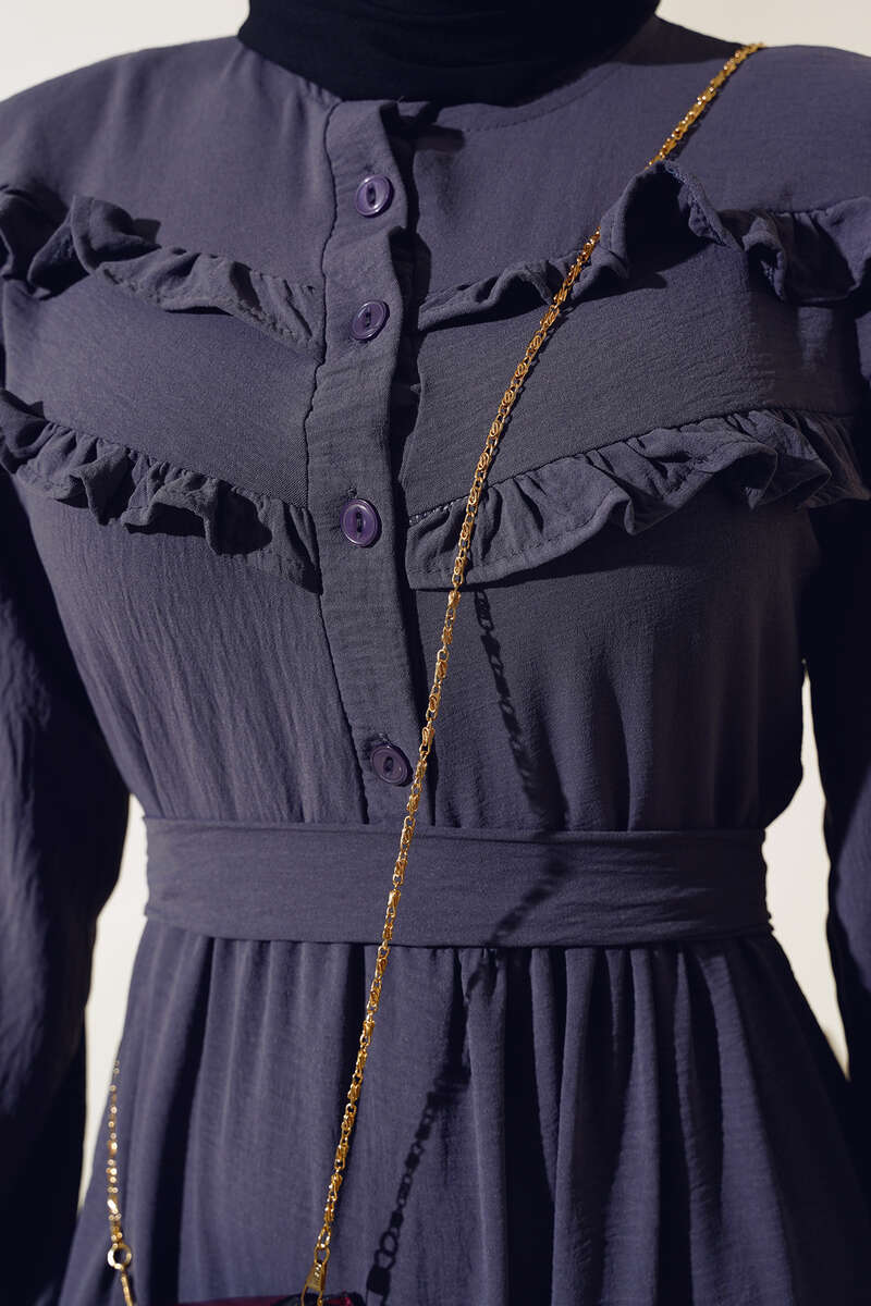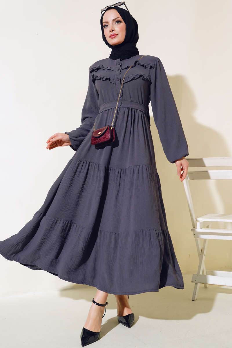 Yeni sezon elbisemiz şık tarzıyla sizlerle beraber. Elbisemizin önü fırfırlıdır. Yarım düğmelidir. Kol bilekleri lastiklidir. Elbisemiz kat modeldir. Kendi kumaşından kuşağı vardır. Astarsızdır. Renk seçenekleri olan elbise modelimiz dolabınızda yerini beklemektedir.