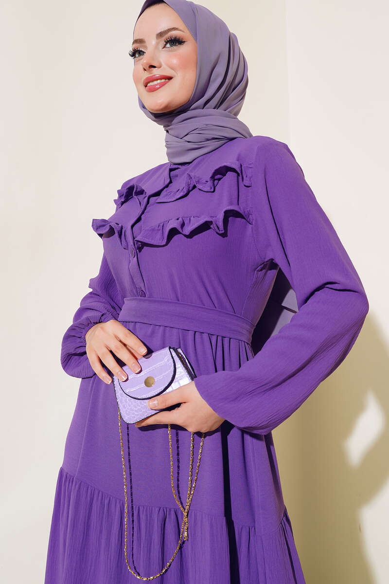 Yeni sezon elbisemiz şık tarzıyla sizlerle beraber. Elbisemizin önü fırfırlıdır. Yarım düğmelidir. Kol bilekleri lastiklidir. Elbisemiz kat modeldir. Kendi kumaşından kuşağı vardır. Astarsızdır. Renk seçenekleri olan elbise modelimiz dolabınızda yerini beklemektedir.