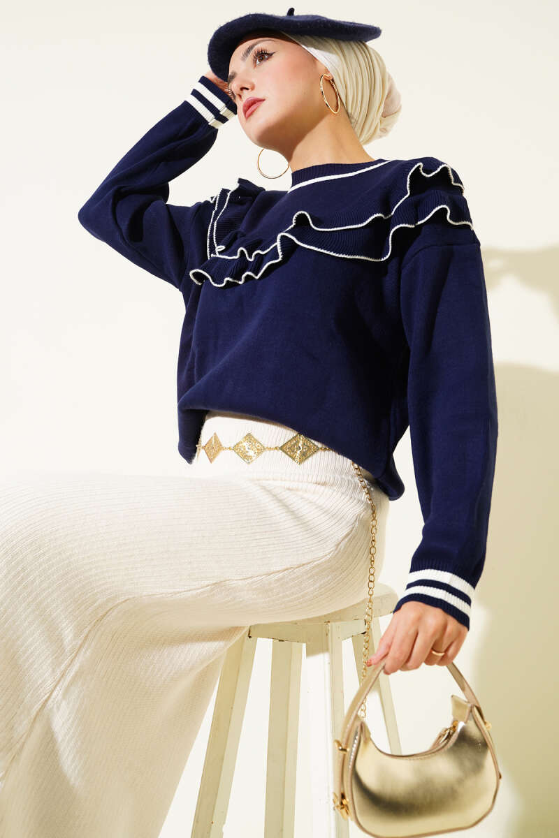 Çiçekli İnci İşlemeli Triko Kazak Bordo