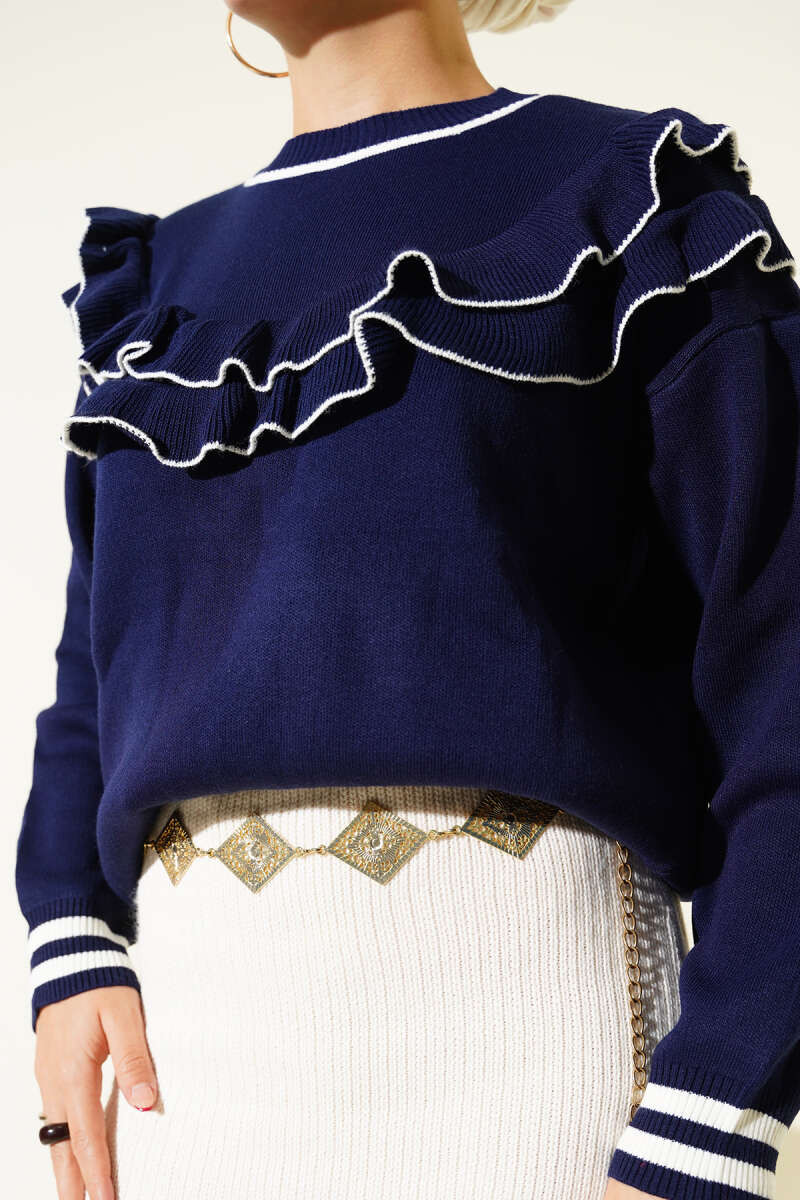 Çiçekli İnci İşlemeli Triko Kazak Çağla Yeşili