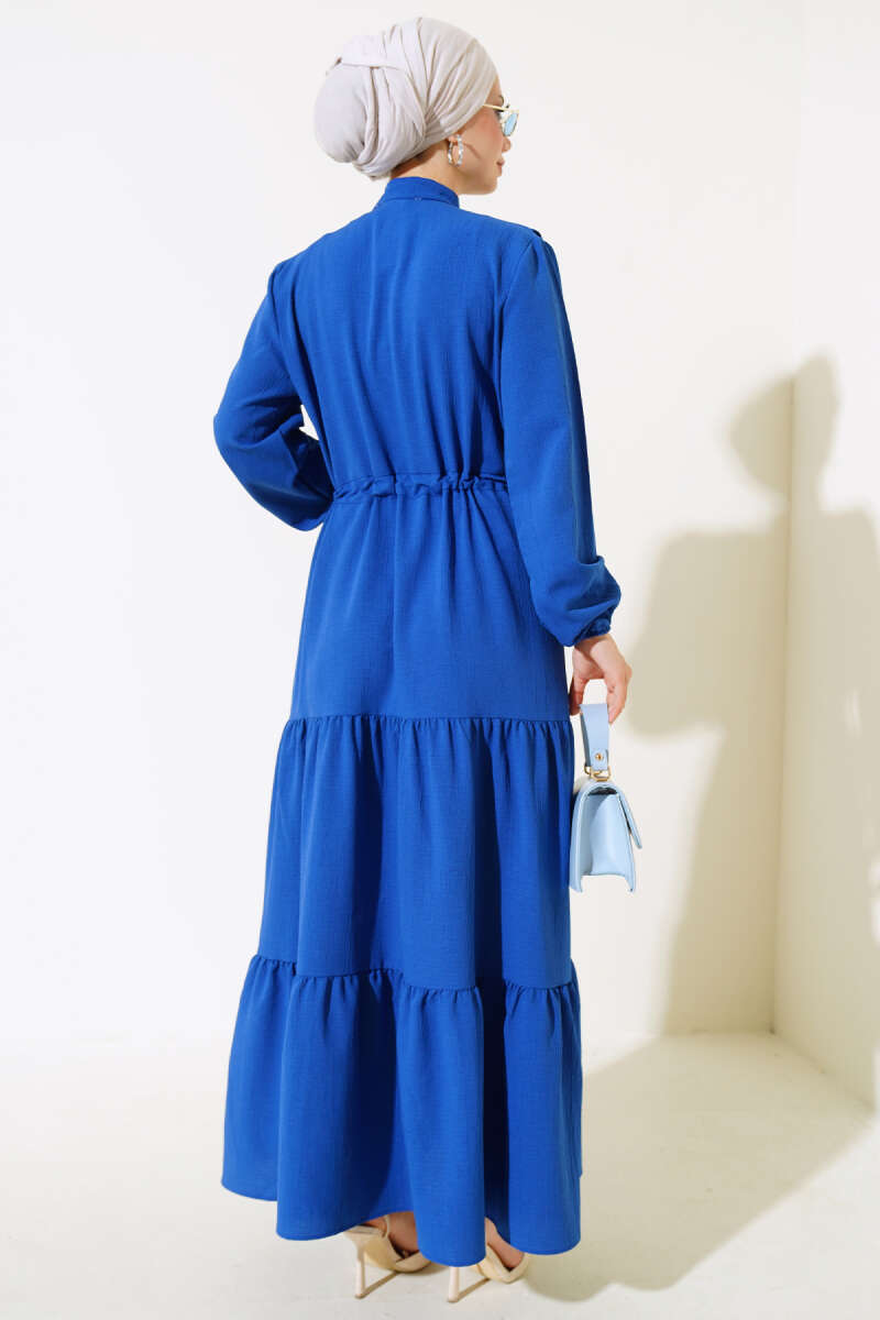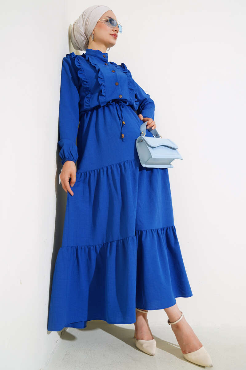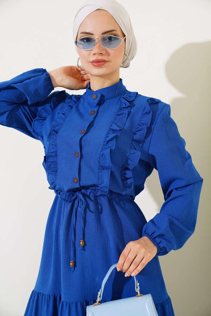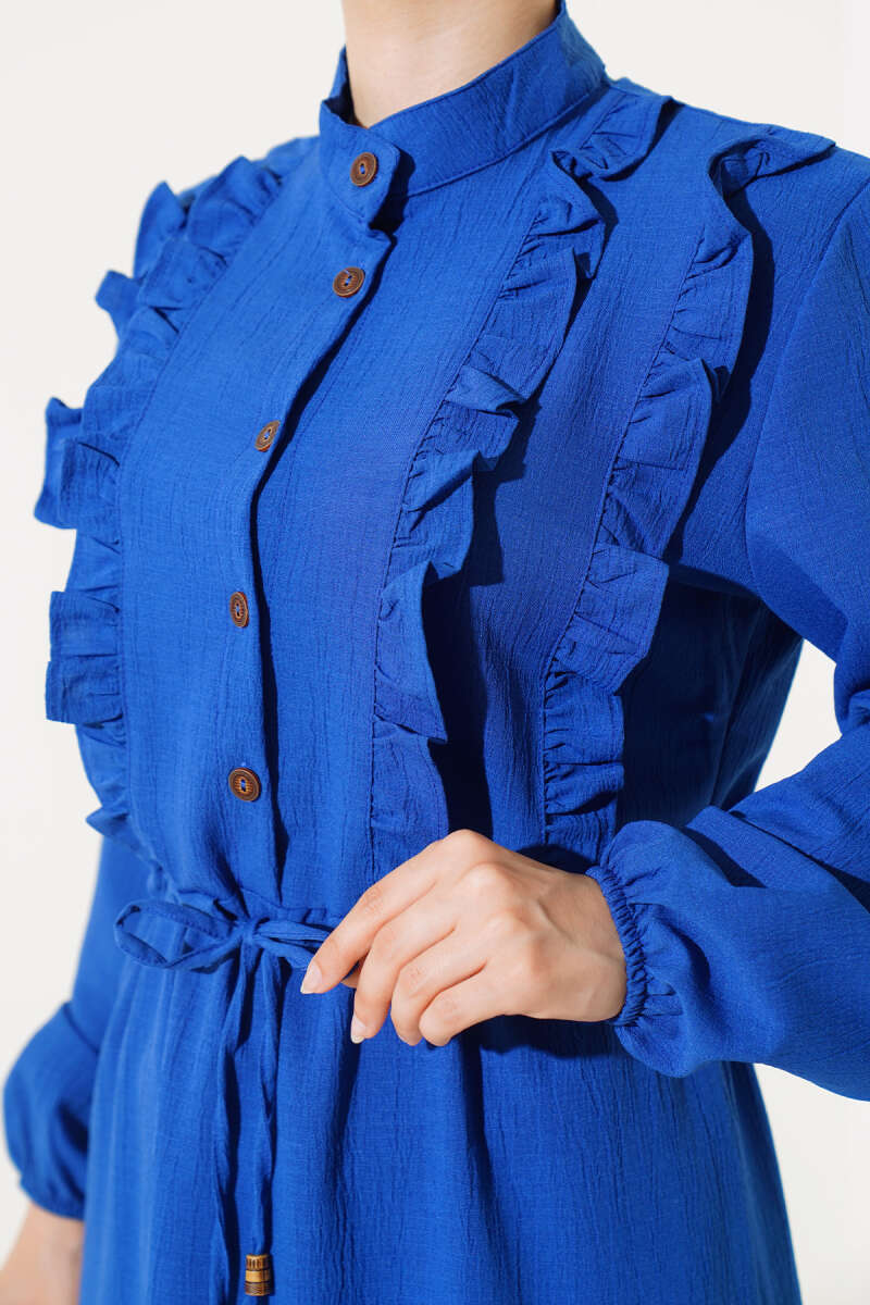 Fırfırlı Fermuarlı Kot Elbise Kot Mavisi