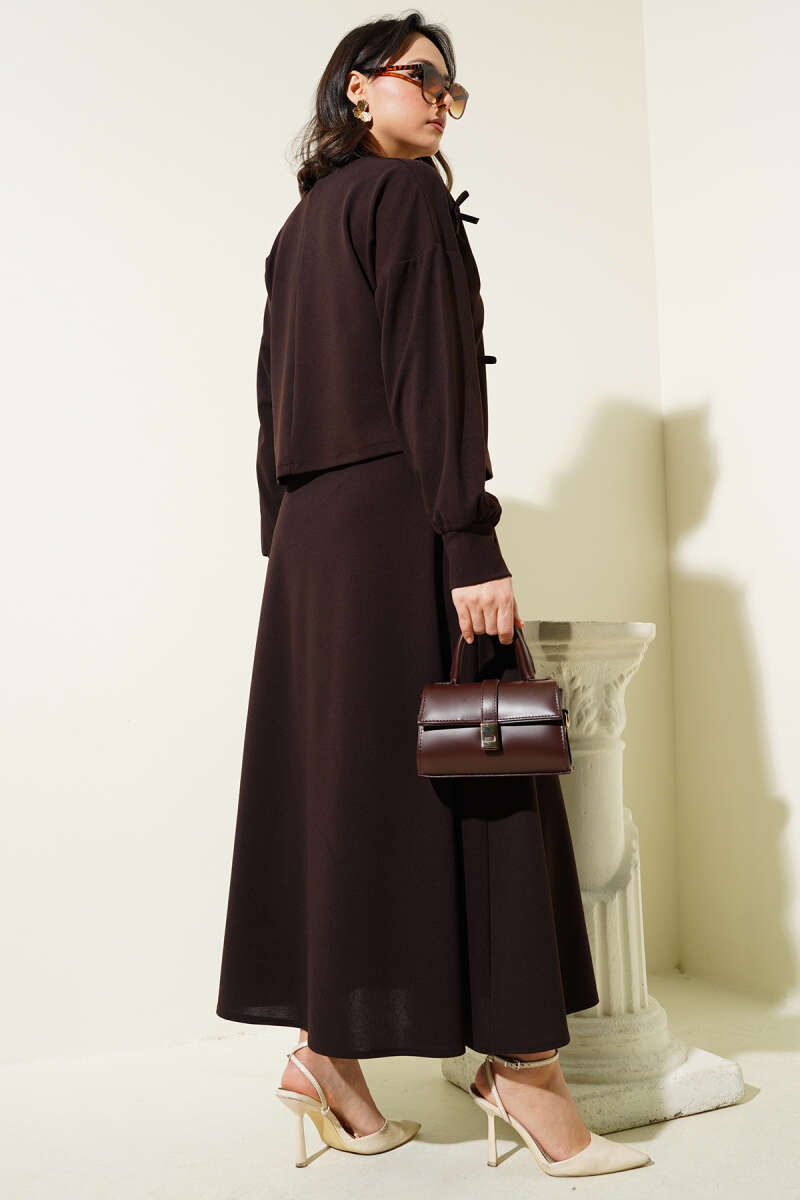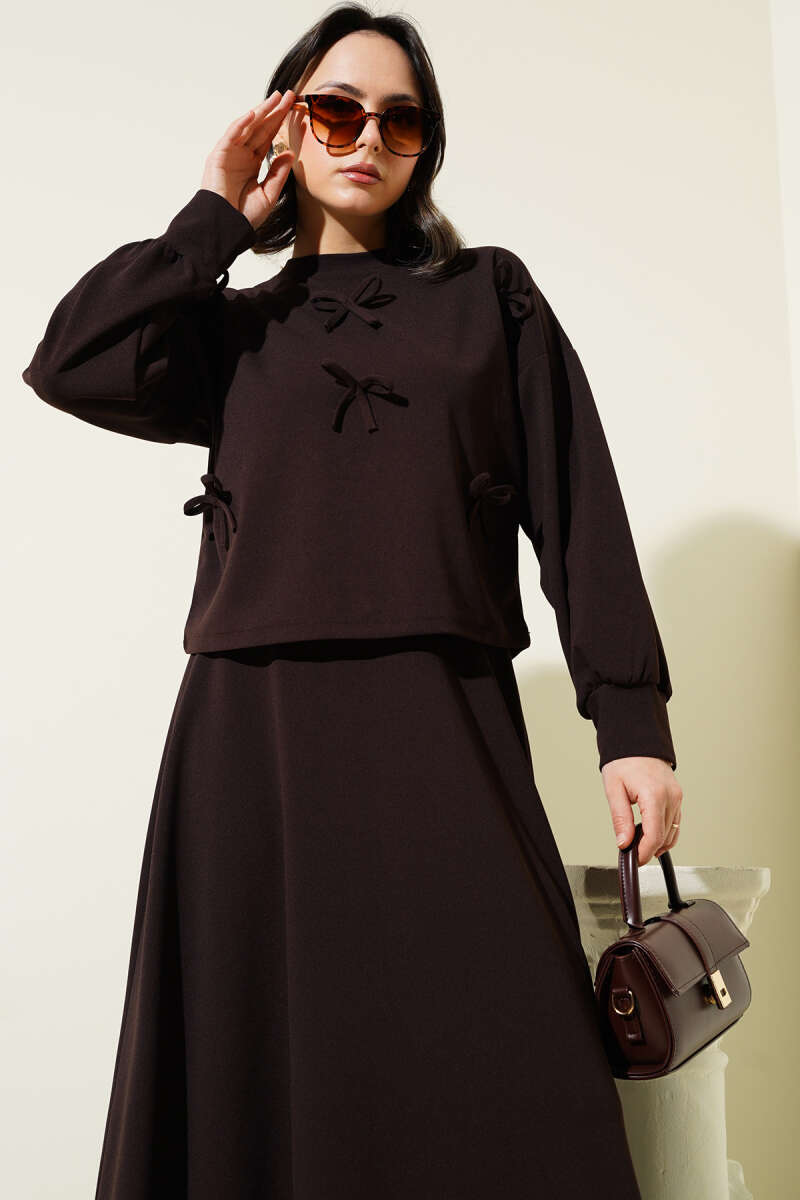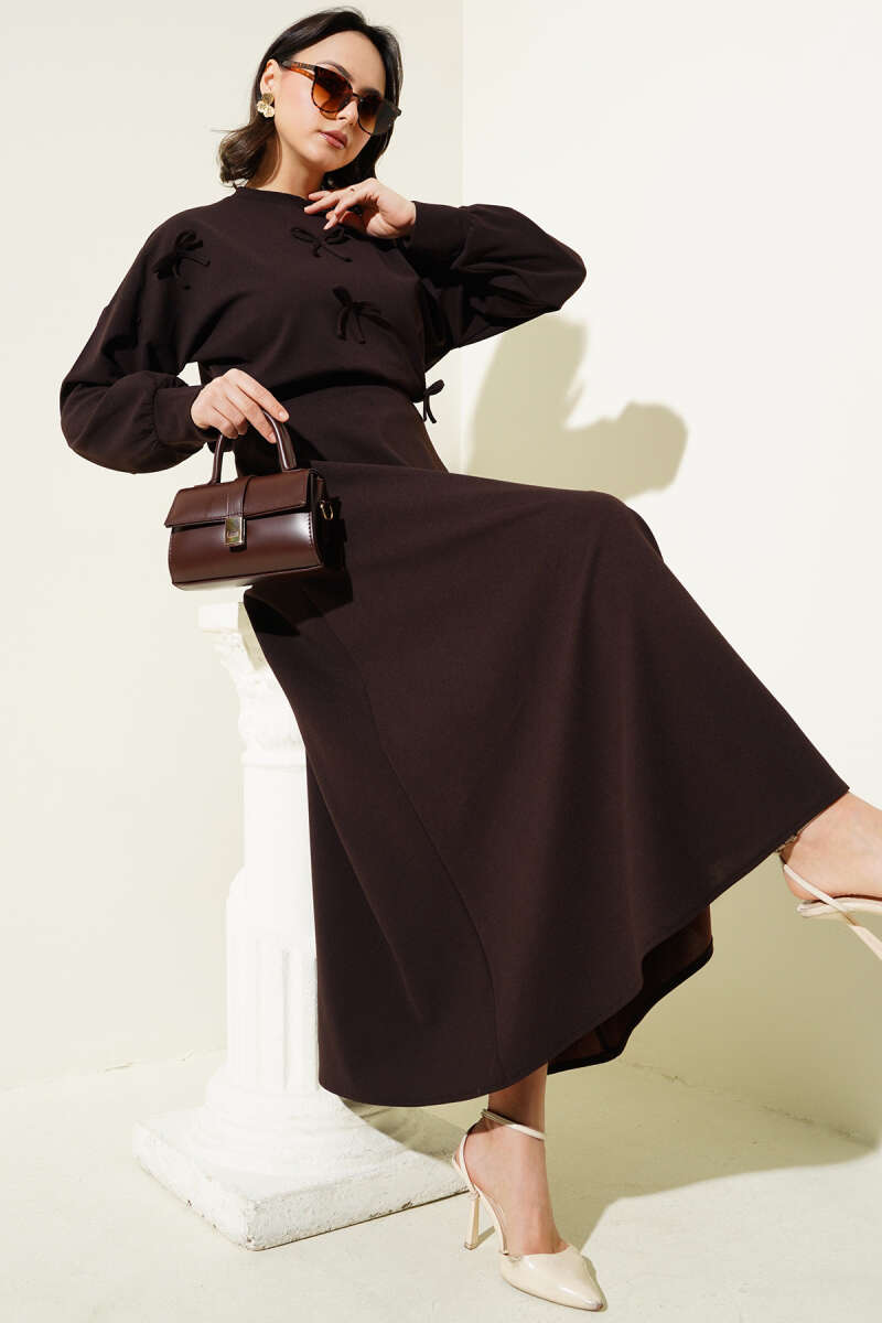 Önü Bağcıklı Bilek Lastikli Etekli Takım Füme