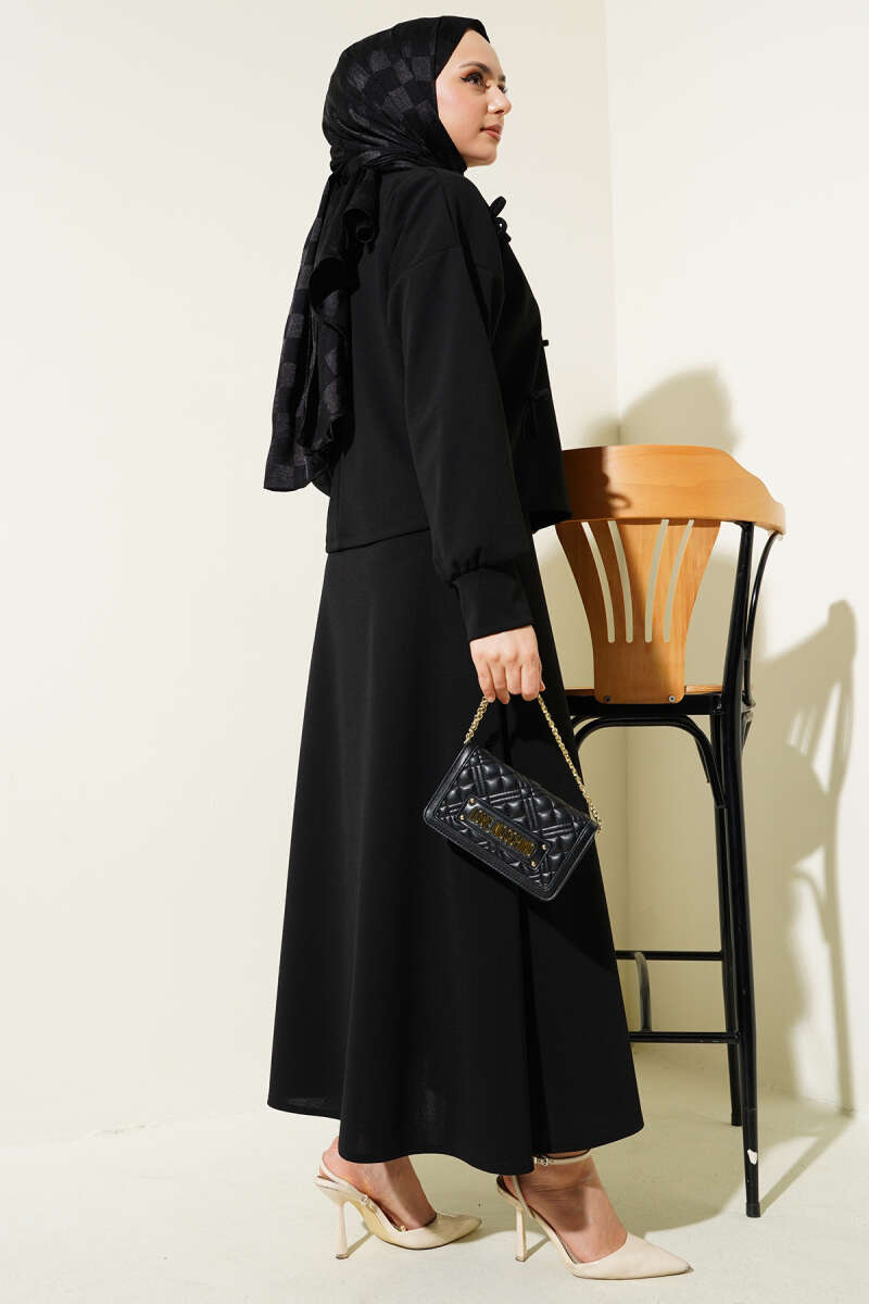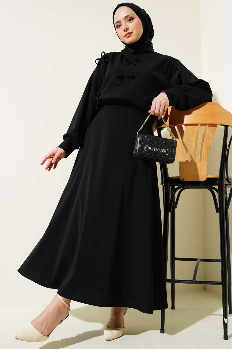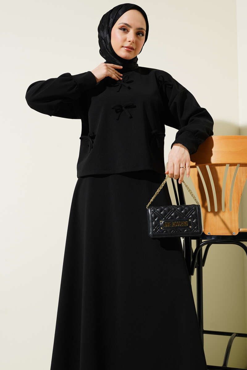 Basic Bel Lastikli Bluzlu İkili Takım Siyah