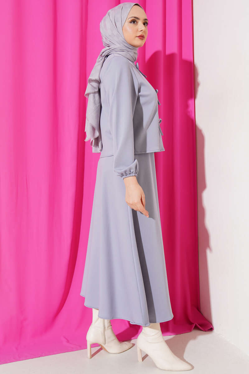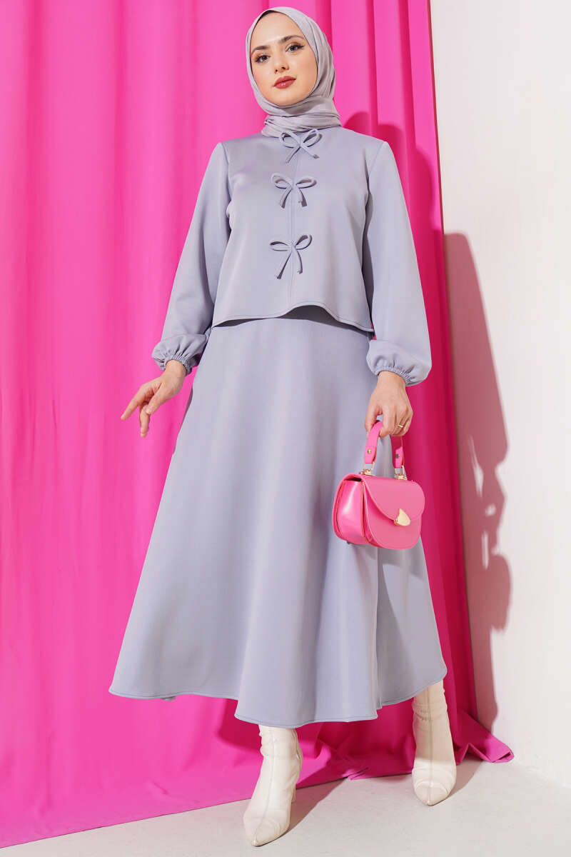 Önü Fiyonklu Etekli Scuba İkili Takım Gri