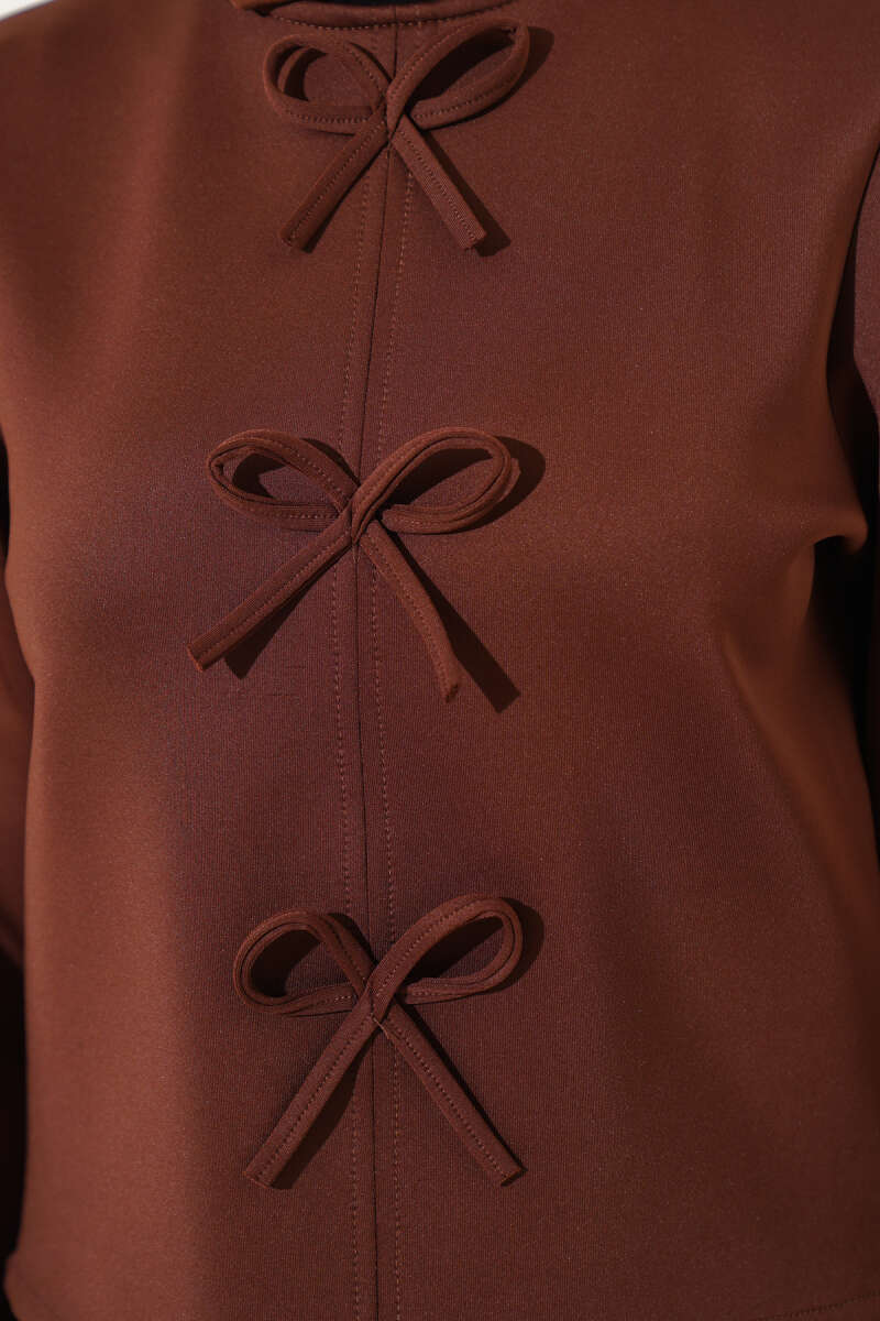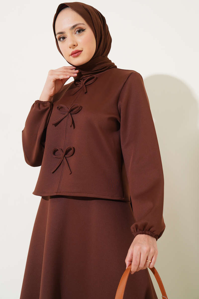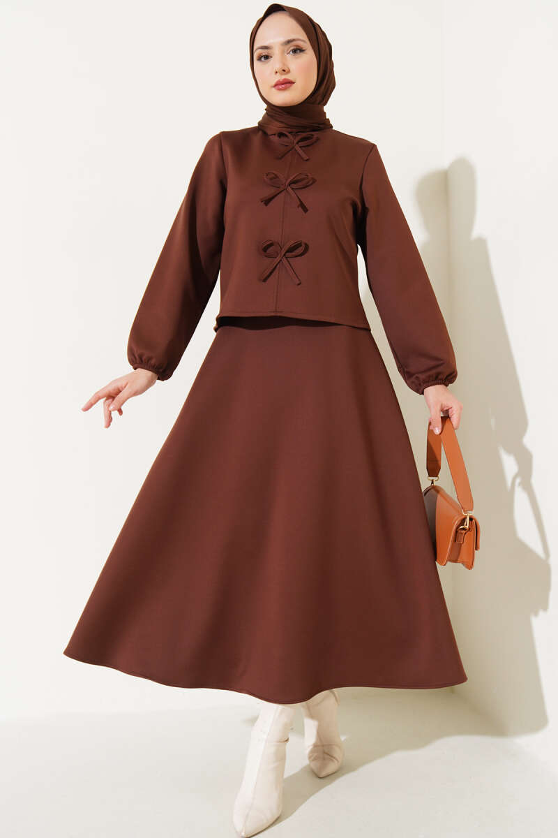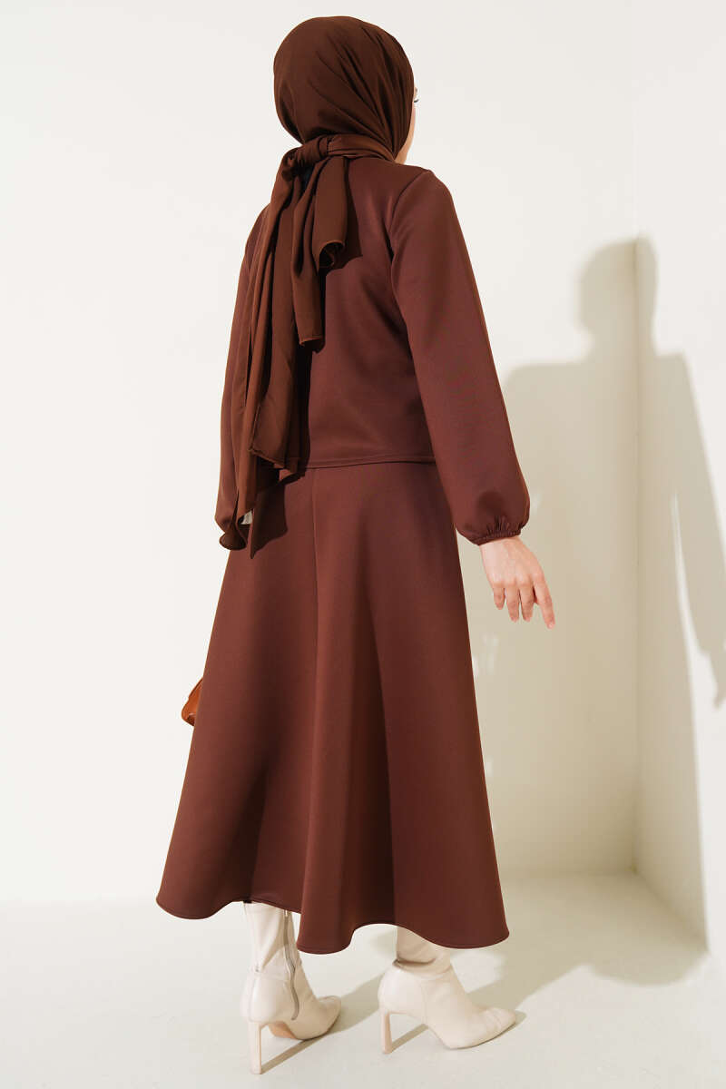 Asimetrik Kesim Bisiklet Yaka İkili Takım Kahve