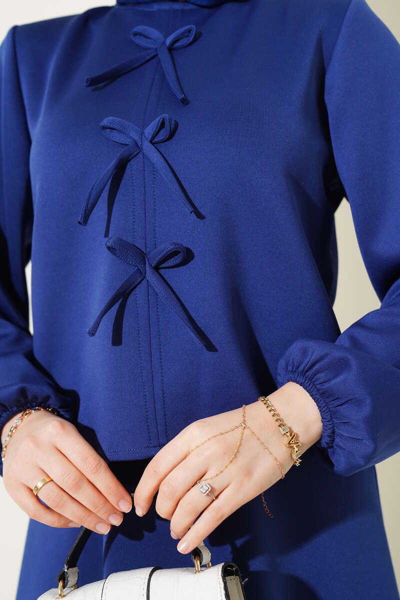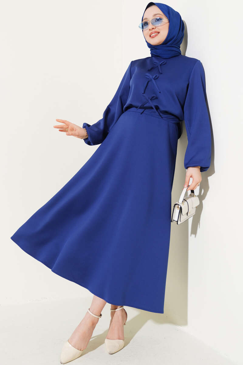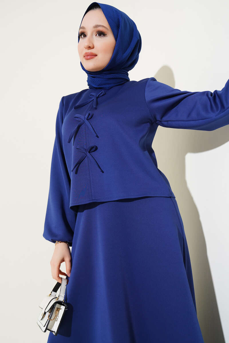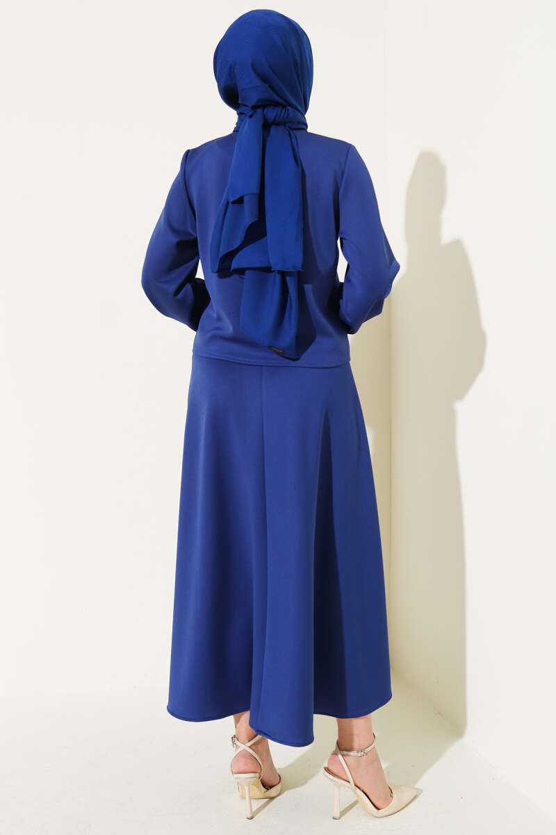 Önü Fiyonklu Etekli Scuba İkili Takım Lacivert