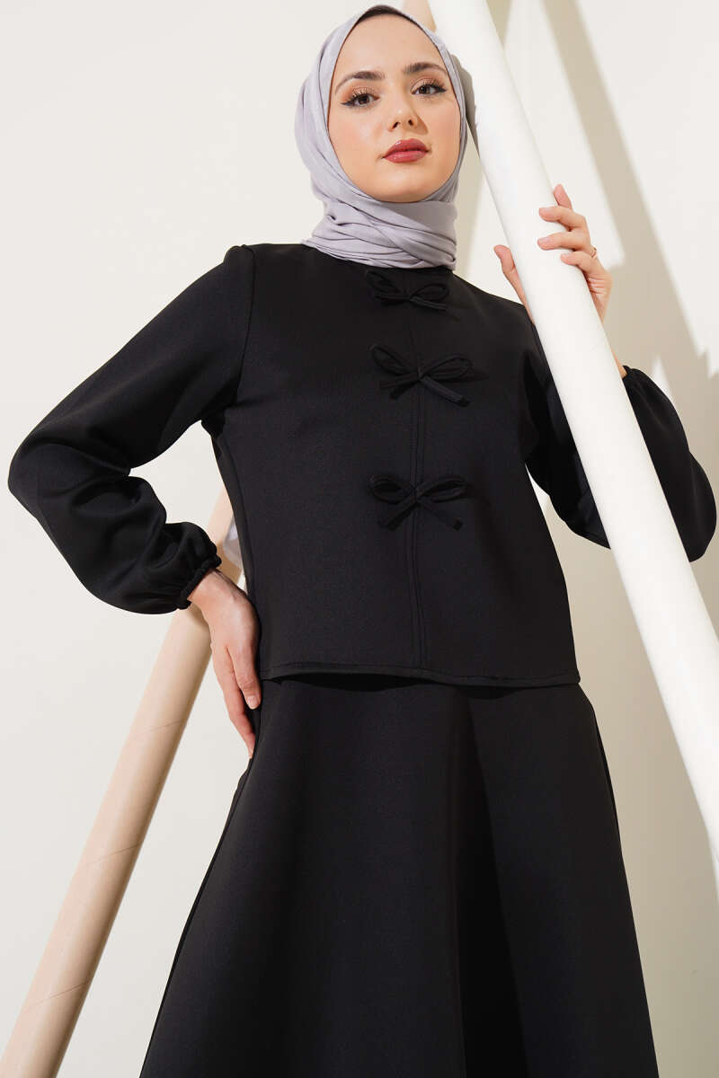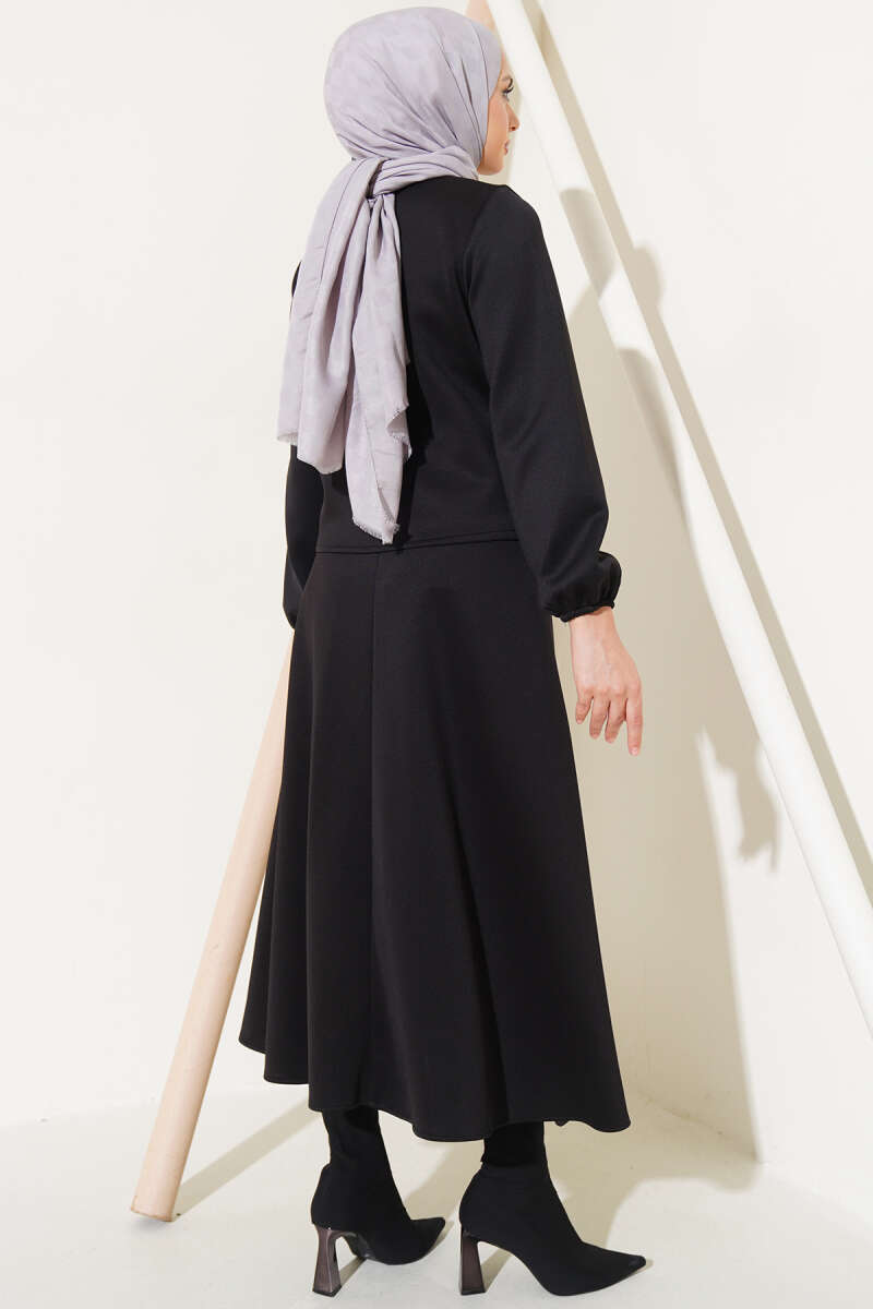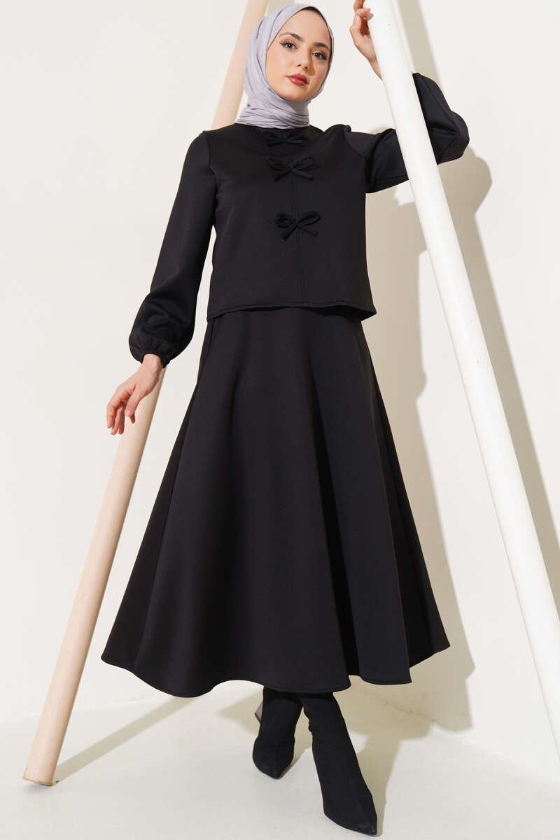 Önü Fiyonklu Etekli Scuba İkili Takım Siyah