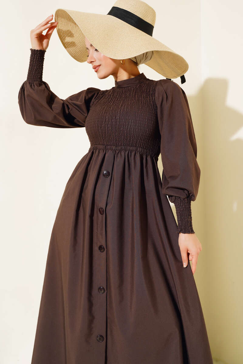 Yarım Yaka Fermuarlı Scuba Elbise Kahve
