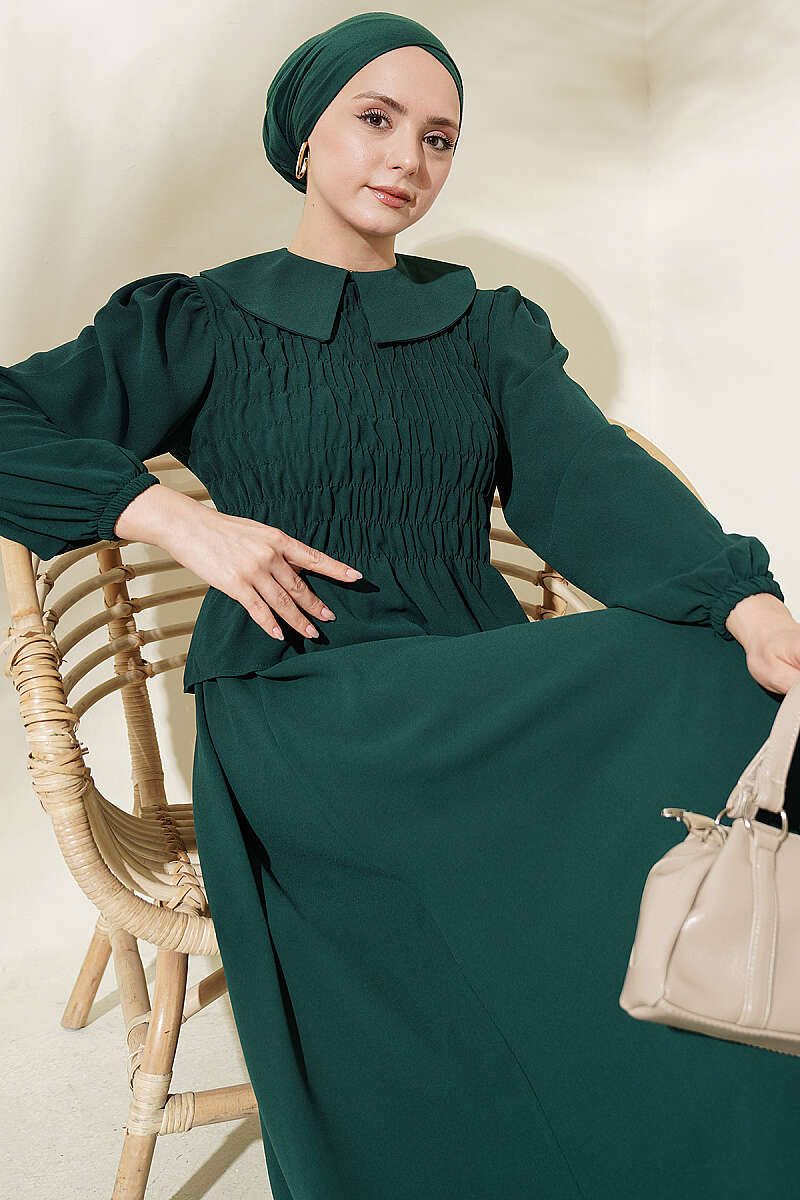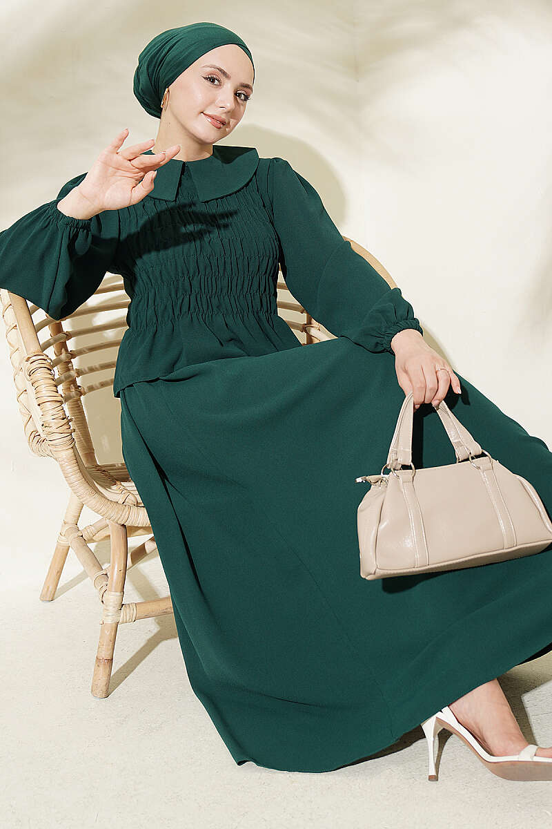 Önü Gipeli Etekli İkili Takım Zümrüt