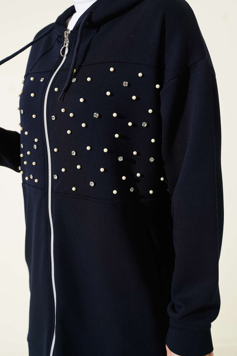 Omuz Boncuk Süslemeli İkili Takım Lacivert