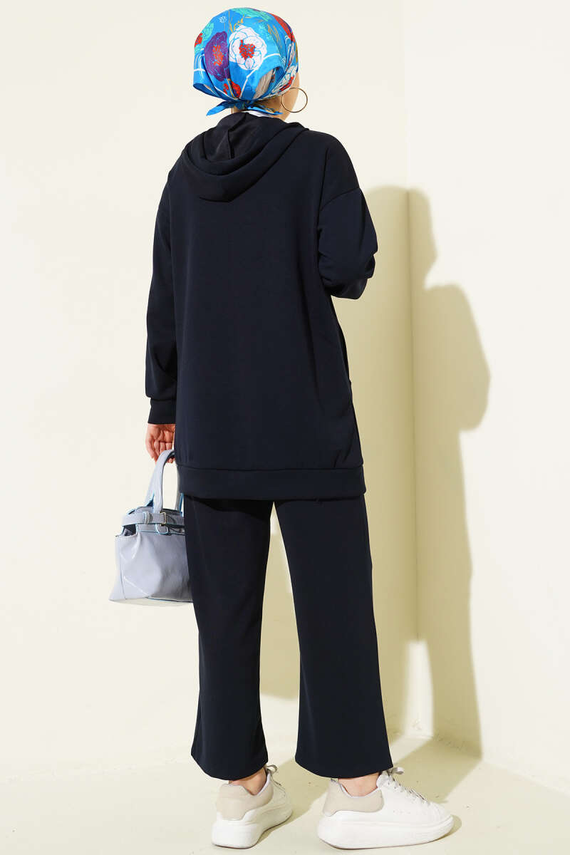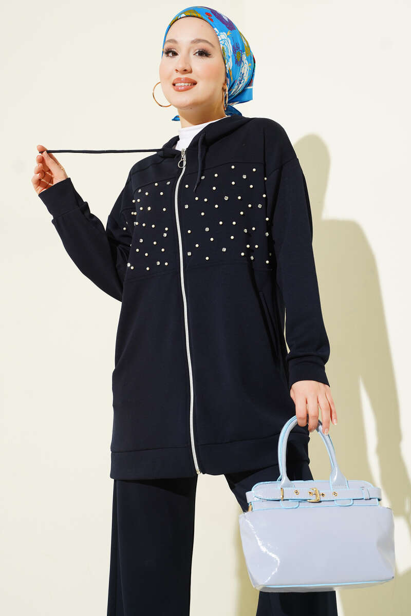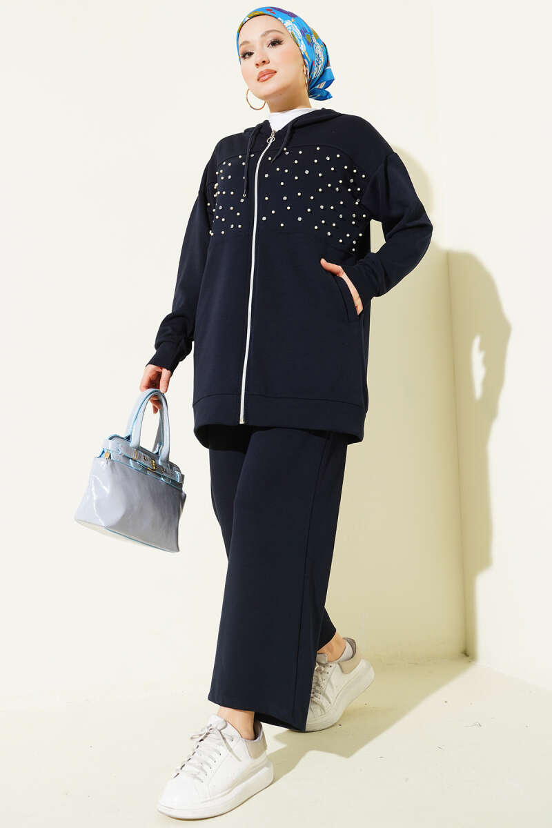 Önü İncili Fermuarlı Loyşa İkili Takım Lacivert